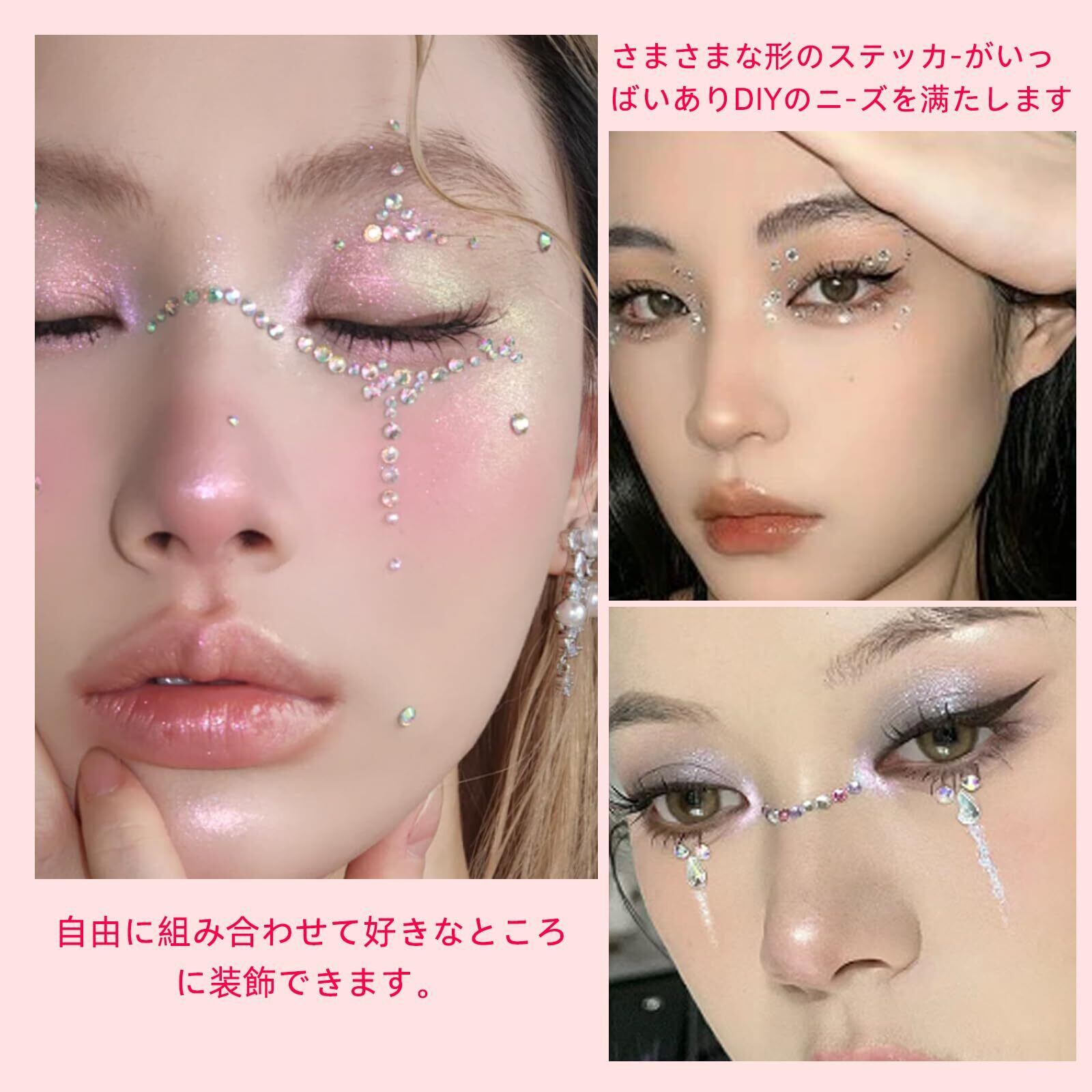DIY用品: キラキラメイクアップステッカー、アクリル素材で作られ、耐久性があり実用的です。デザインによってはDIY工芸品やジュエリーなどにもご使用いただけます。衣服、携帯電話、ネイルアートアクセサリー、バッグ、グリーティングカードの作成などにも非常に適しており、あなたの生活に彩りと創造性を加えます