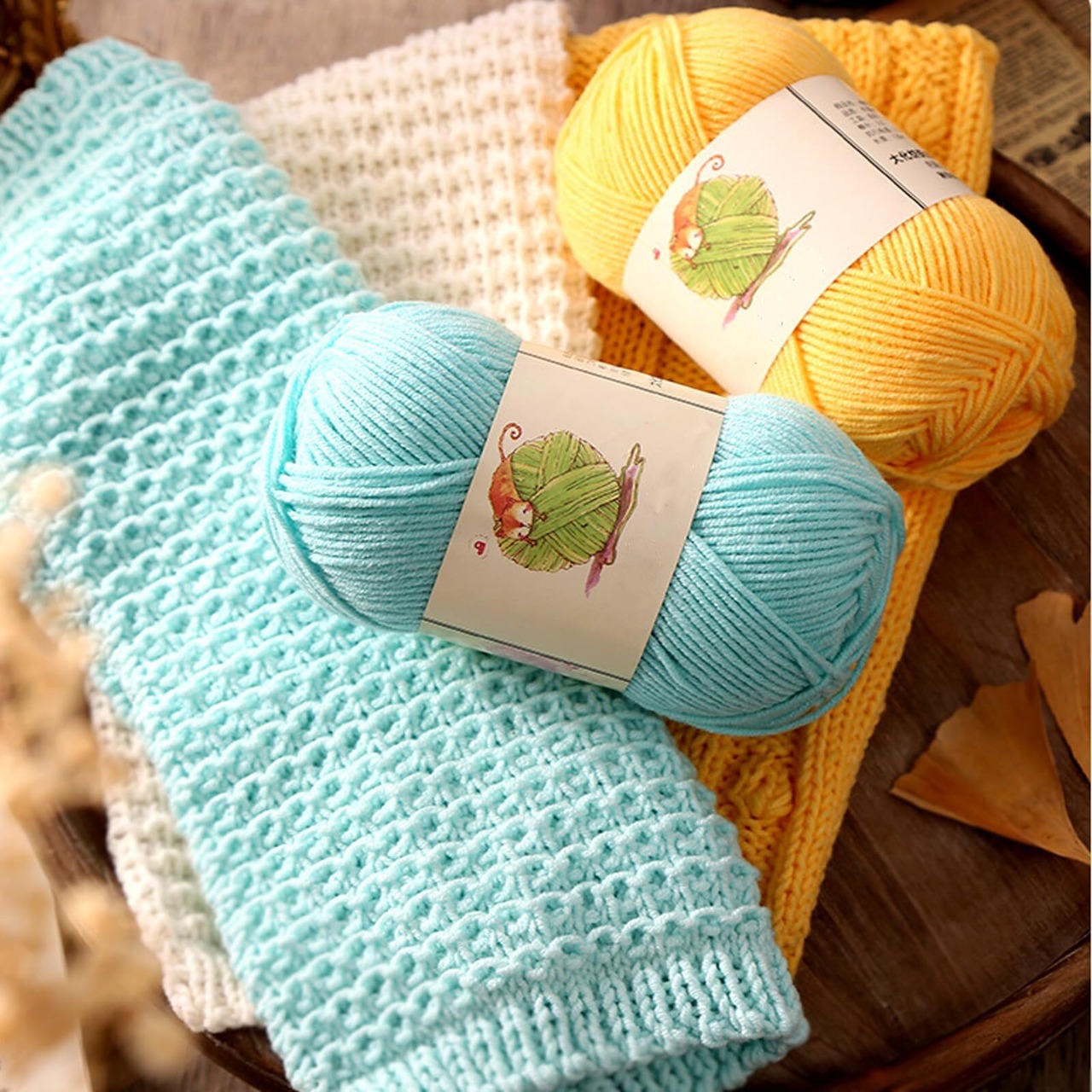 YINKE コットンヤーン 毛糸 40g玉巻(約130m)10色セット かぎ針編み 編み物 小物 デコレーション (カラー5)