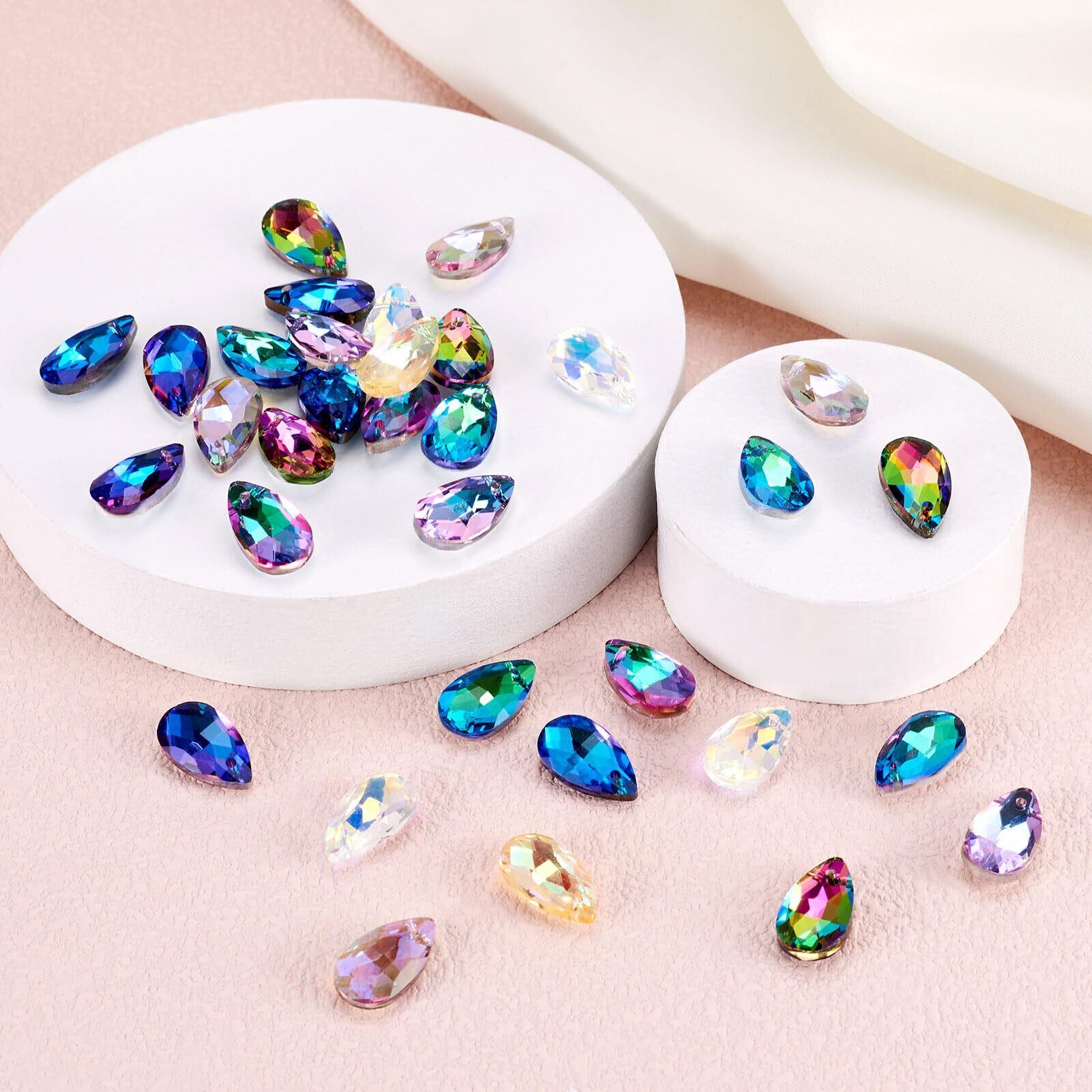 Beadthoven 約100個/箱 10色 しずく型 雫形 ガラスペンダント 多面カット サンキャッチャー キラキラ ガラスストーン チャーム ビーズ アクセサリーパーツ ジュエリー用 DIY ハンドメイド 手芸材料 手作り素材 クラフト用品 16x9x5mm