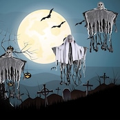 【幅広い用途】ハンギングゴーストは、お化け屋敷やバー、ハロウィンパーティー、舞台、屋内外のデコレーション、ハロウィンデコレーション、ハンギングホーンテッドハウスデコレーション、コスプレなどに飾り小物として存在感バッチリです。不気味な雰囲気を作り出したり、墓地の場面、パーティー、幽霊屋敷、カーニバルデコレーション、クラブデコレーションで人々を怖がらせます。インテリアグッズとして玄関、リビング、天井、子供部屋などに置いてもOKです。自分はもちろん、ホラーが好きな友達や家族へプレゼントとして送らればよい選択です。