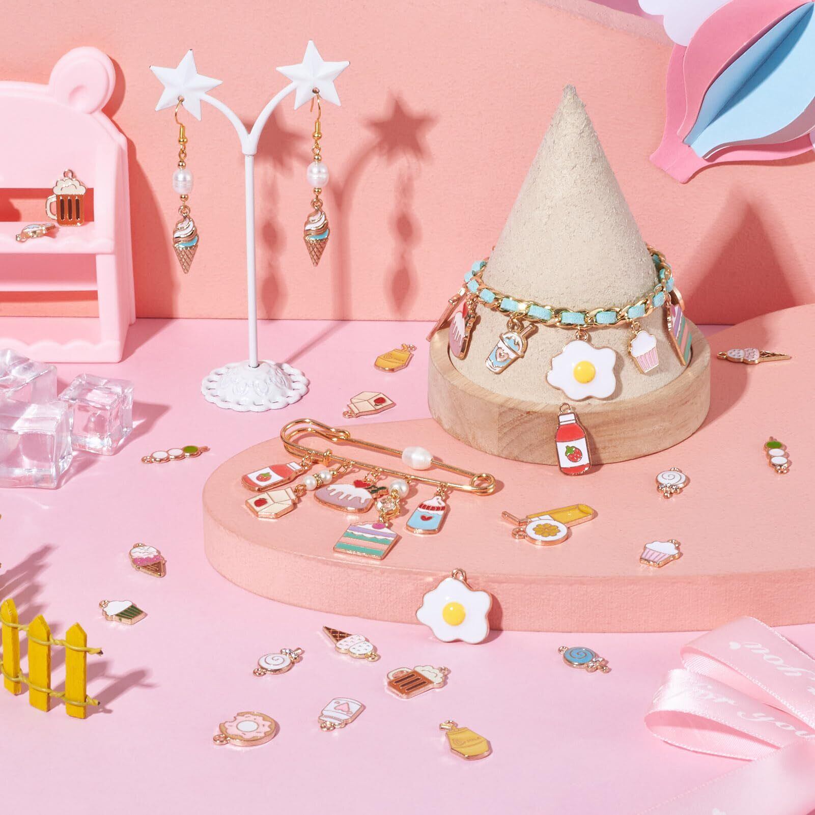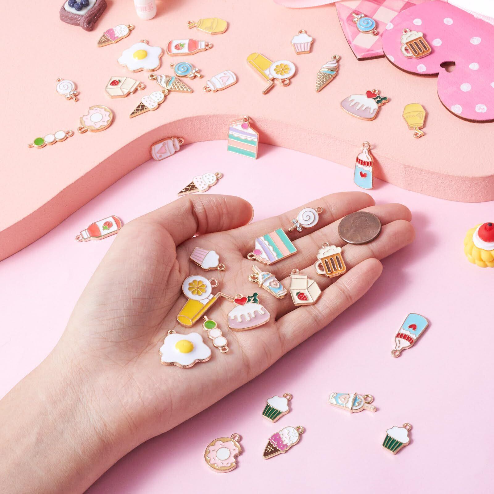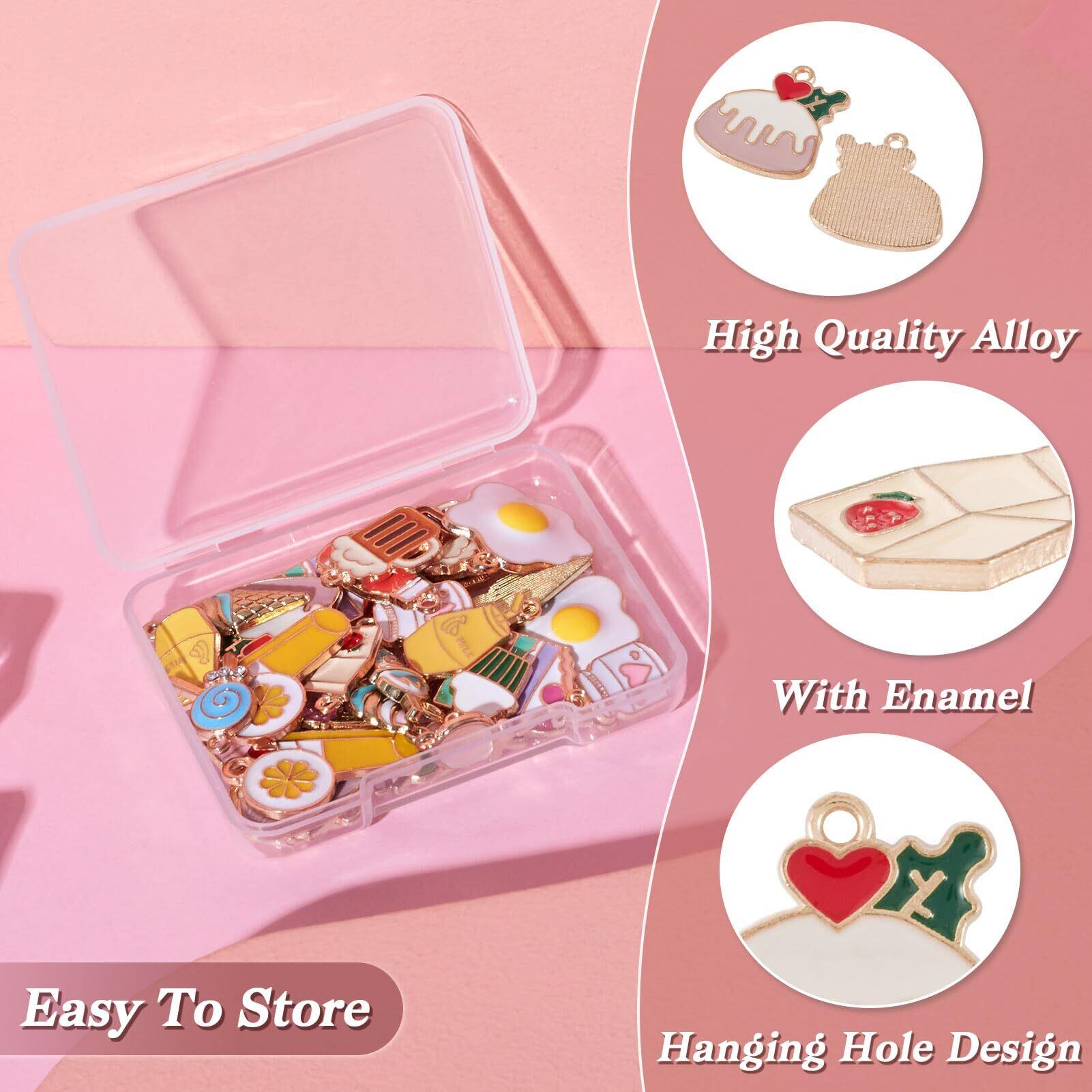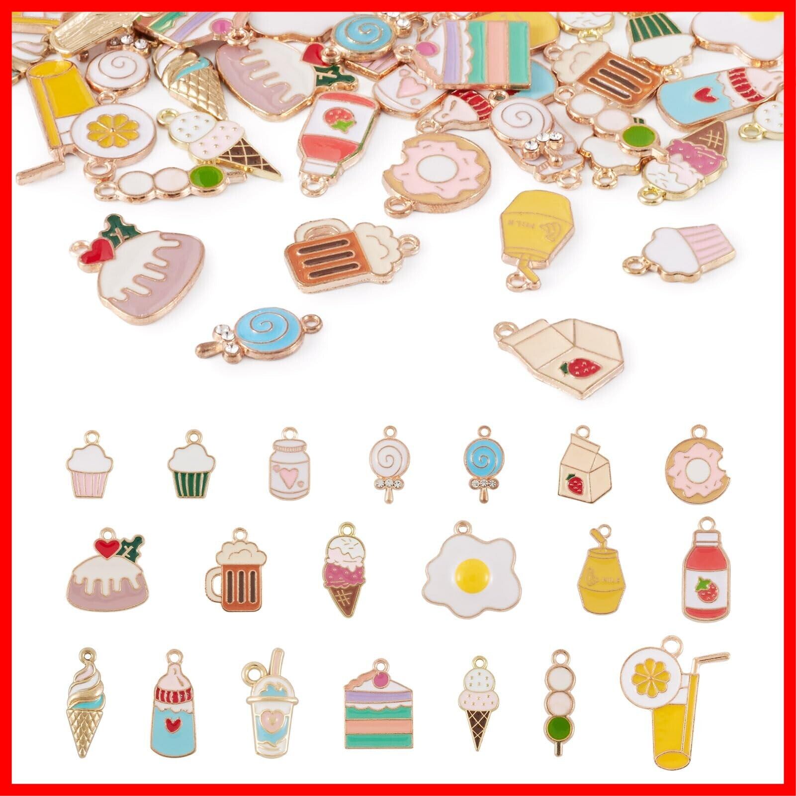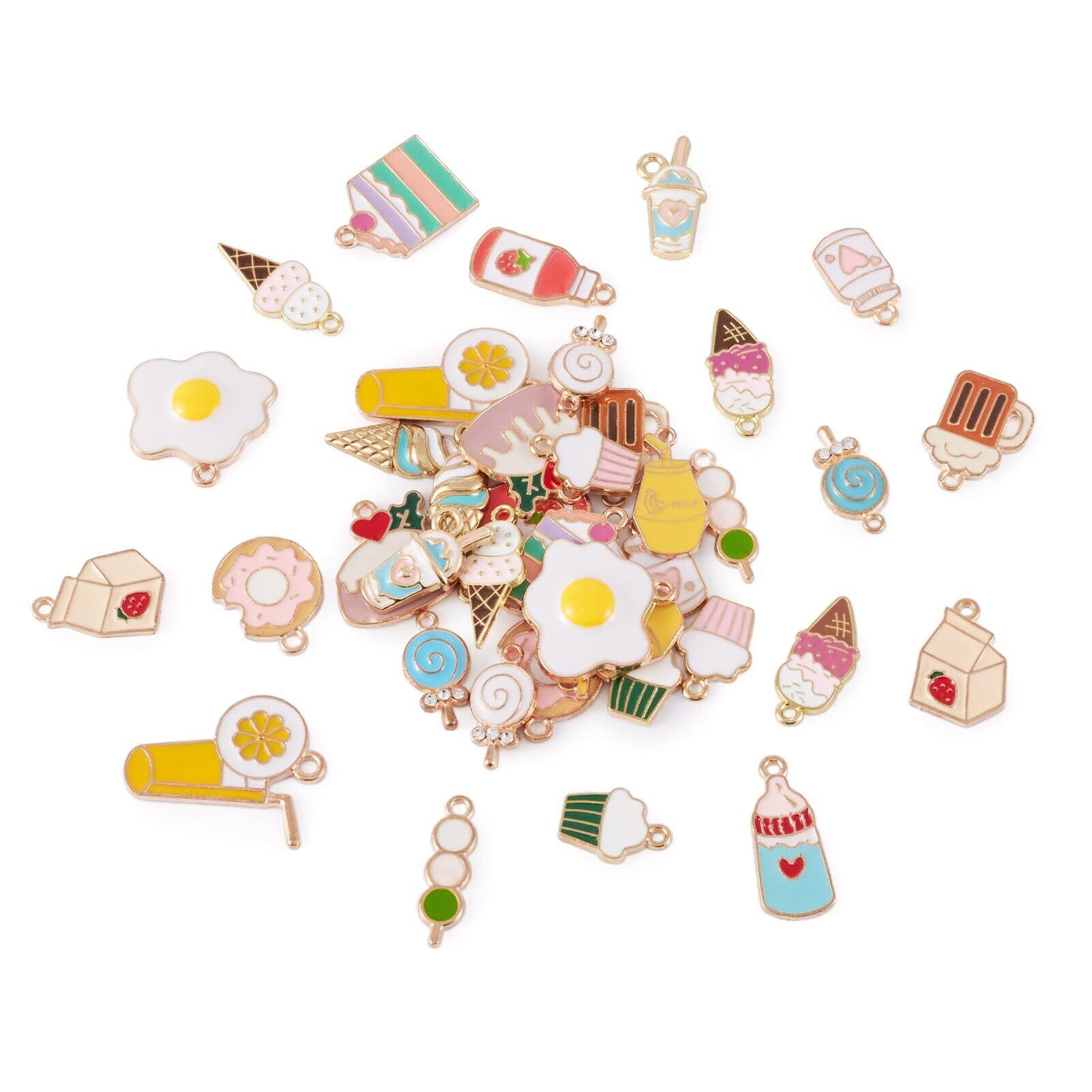 [BB Beadthoven] 40個入り 20種類 合金エナメルペンダント ケーキ アイスクリーム ドリンク ロリポップ 模造食品 チャーム アクセサリーパーツ ジュエリー用 DIY ハンドメイド 手芸材料 手作り素材 クラフト用品 収納ケース付き | hananoki