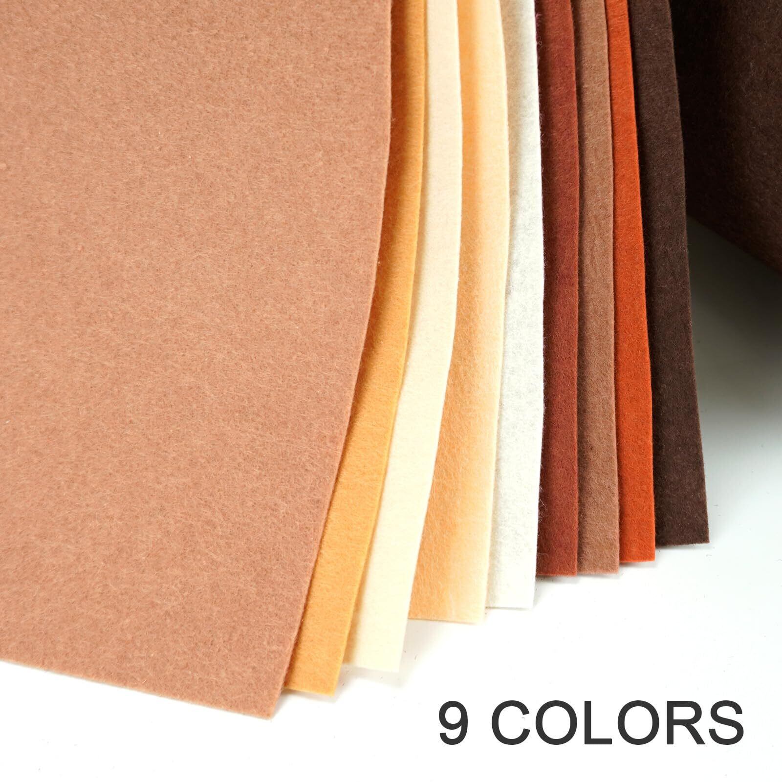 9枚 カラフル フェルト生地 柔らかい 不織布シート 厚さ約1mm DIY手芸用品 手作り材料 幅20cm×長さ91cm/枚 (ブラウン)