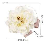 デザイン: 純白のエレガントな花びらにパールとビーズをあしらった上品なフラワーコサージュ