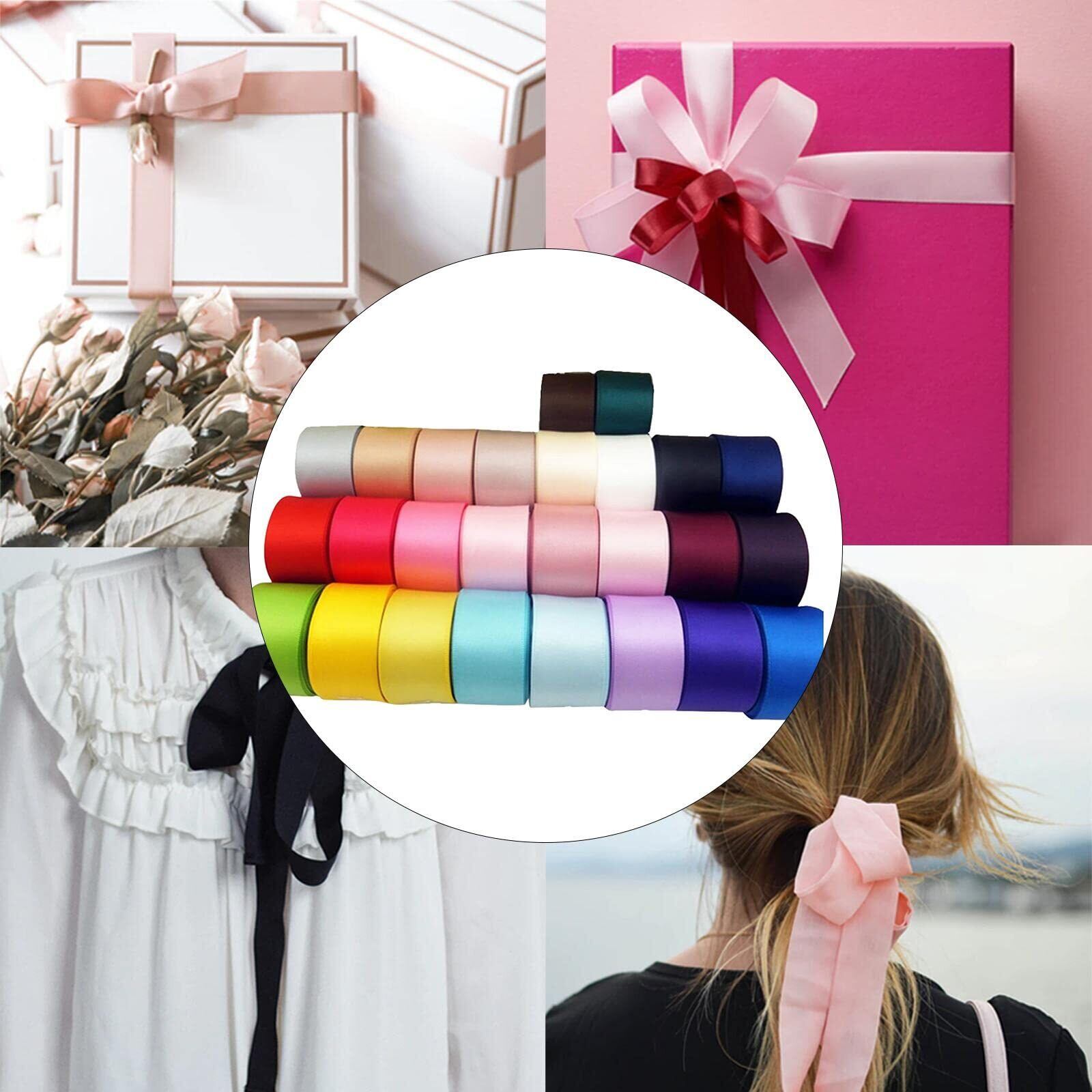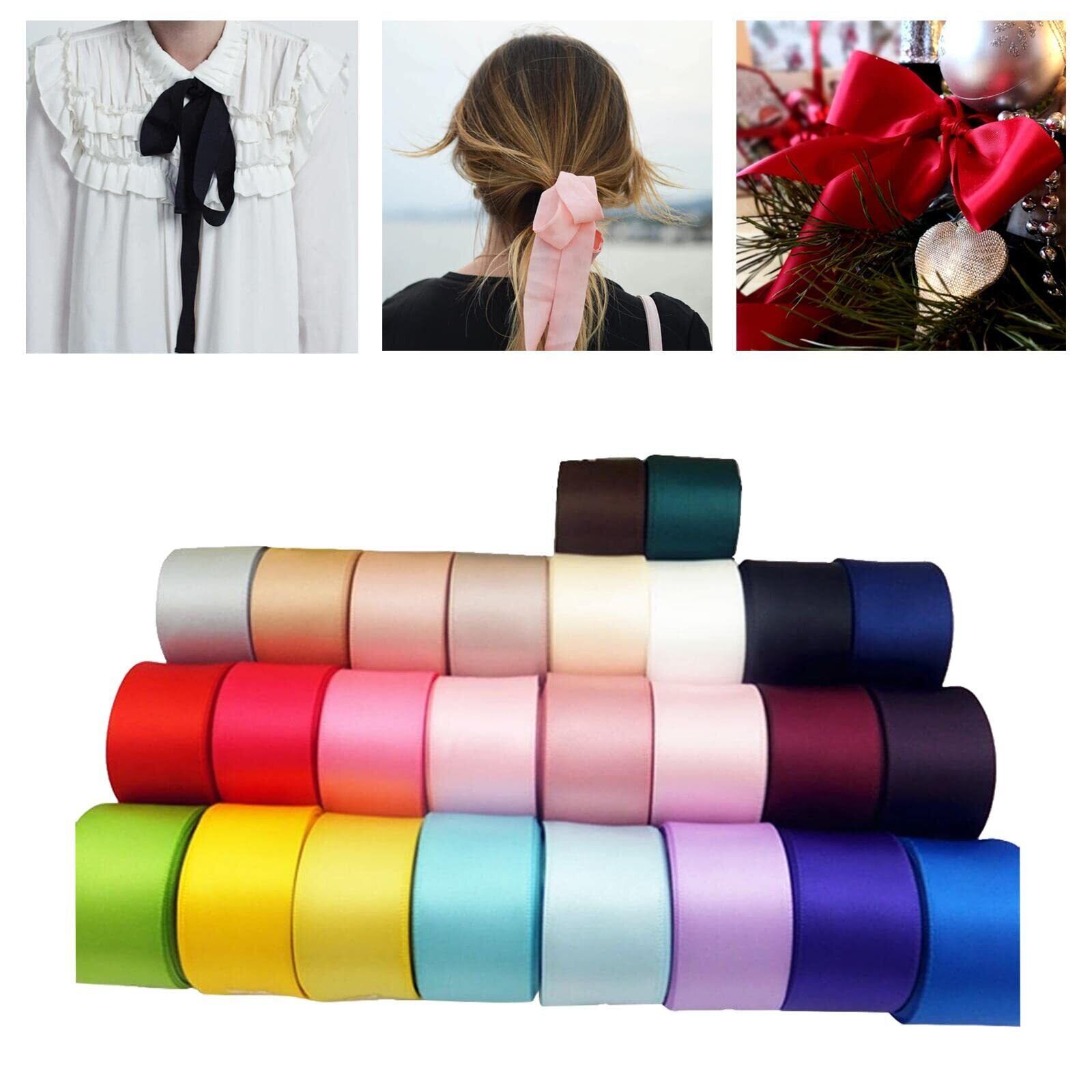 ️26色両面使用可能:25mm幅サテンリボンで作業しやすさ抜群、両面リボンが創作の幅を拡大(表裏同じ発色で失敗なし)。