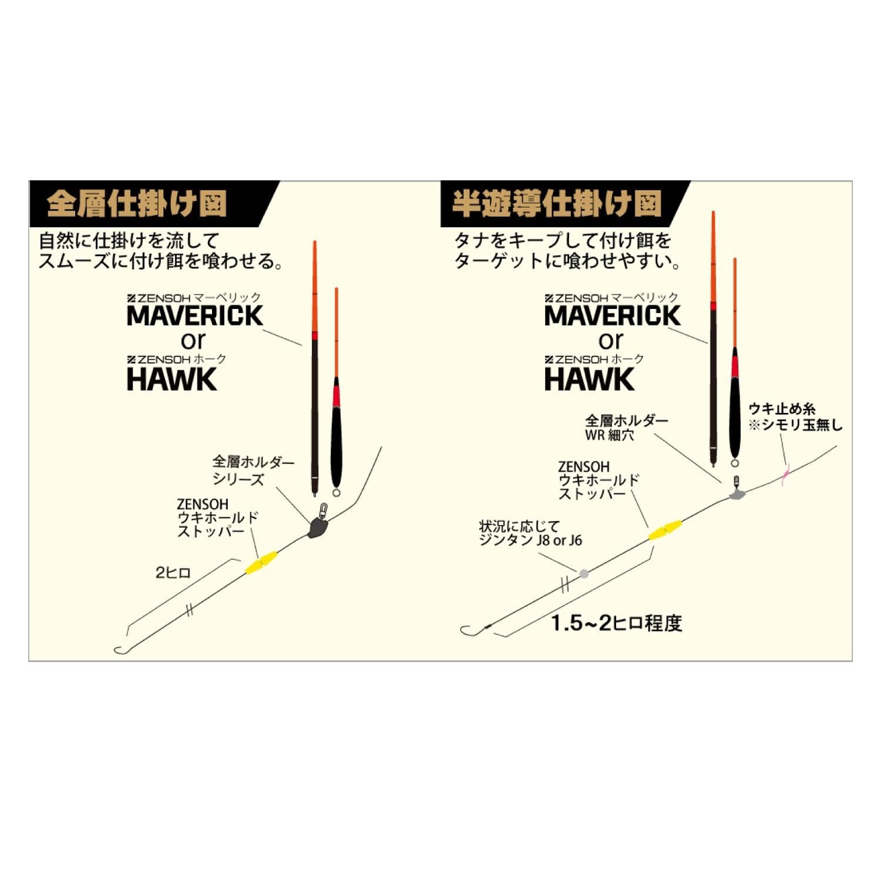 キザクラ(kizakura)ZENSOH ホーク!!キザクラ(kizakura)ZENSOH マーベリック!!グレ・メジナを棒ウキで狙う!棒ウキの「仕掛けの安定性」・「視認性」・「感度」のメリットに加えて取り回しの良いサイズを追求したグレ・メジナ専用モデル。感度を重視した低重心仕様で潮噛みが良く、狙った流れに乗せやすい高重量ショートボディ!