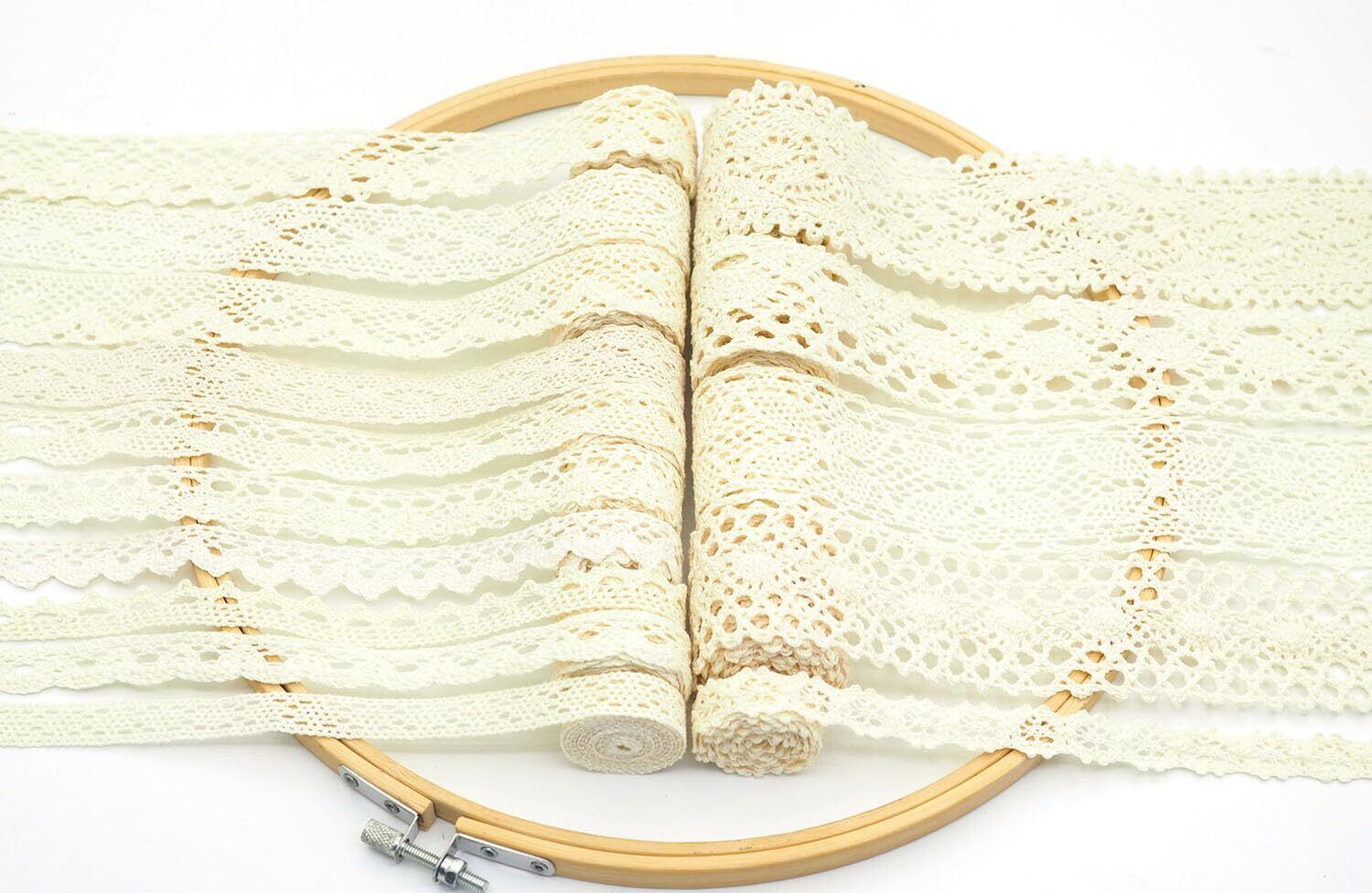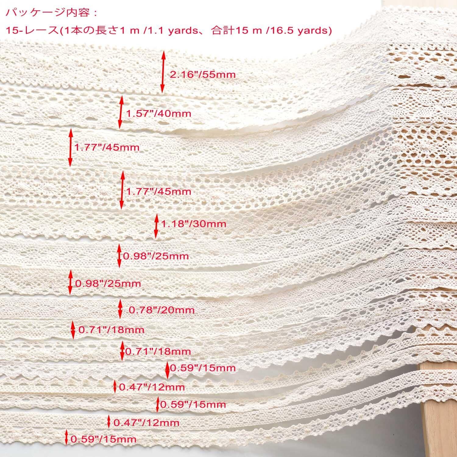 Hymyily 15種 綿レース生地 髪飾り刺繍レース 全長15 m(一本長1 m) /DIY補助材料・裁縫・装飾・刺繍レース・ウェディング糸・ホーム(ベージュ)