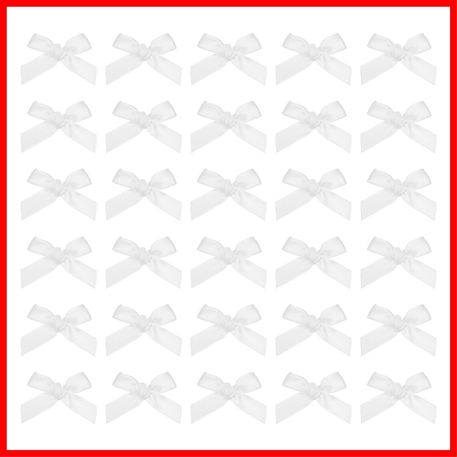 uxcell 50個 ミニリボンボウ4.5 cmミニファブリックサテンリボンフラワーボウ クラフトDIY製作 ウェディング バースデーパーティー ホワイト