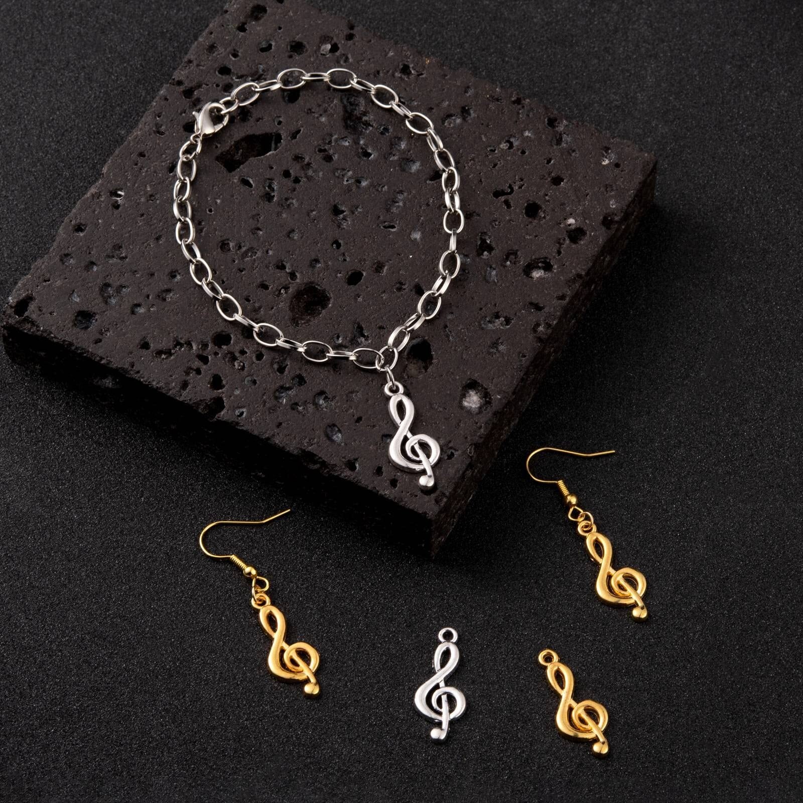 [BB Beadthoven] 約40個/箱 音符 合金ペンダント ト音記号 ミュジック チベット風 メタルチャーム アクセサリーパーツ ジュエリー用 DIY ハンドメイド 手芸材料 手作り素材 クラフト用品 アンティークゴールド&アンティークシルバー