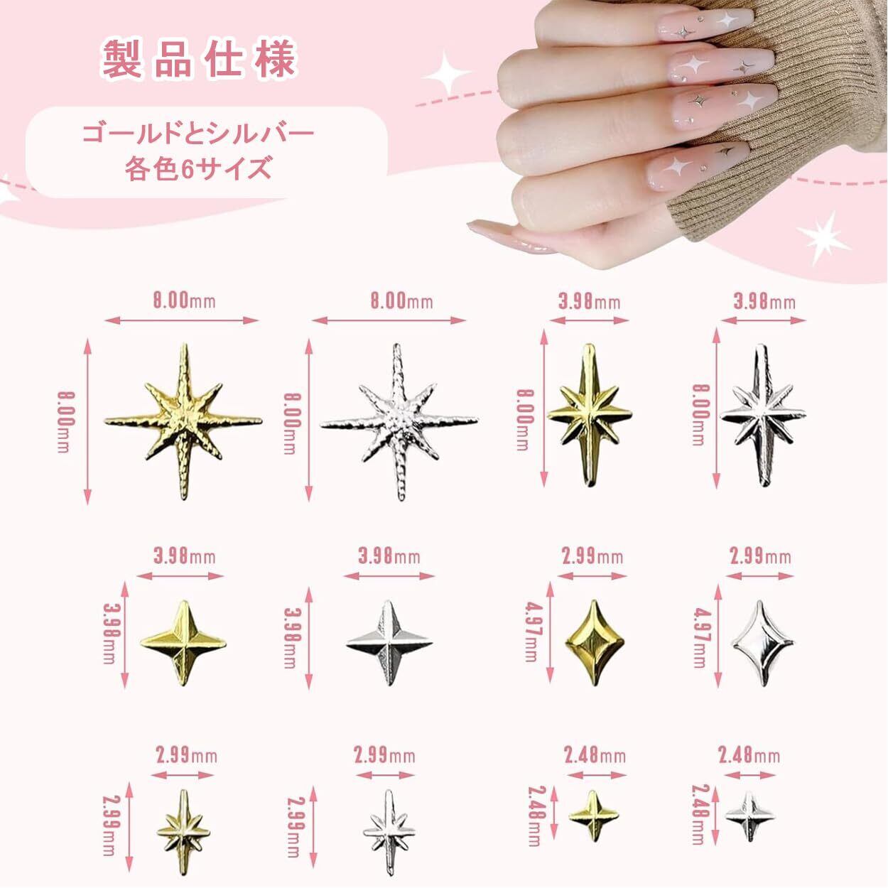 TerraShine ネイルパーツ ネイルストーン デコパーツ ネイルスタッズ 四芒星 十字架 スタッズ 星 小さめ シルバー ゴールド 3D 立体 ネイルアート DIY 手芸素材 ハンドメイド