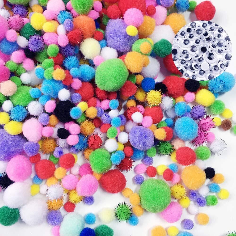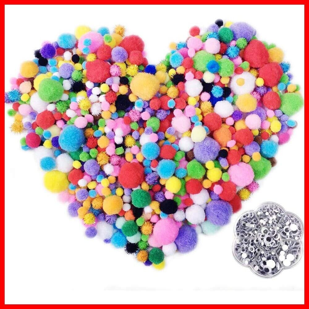 ポンポンボール 2000個 カラフル 毛球 小玉 + 700個 ドールアイ 人形 目玉 セット 髪飾り DIY手作り 手芸材料 丸い毛球 5サイズ入り