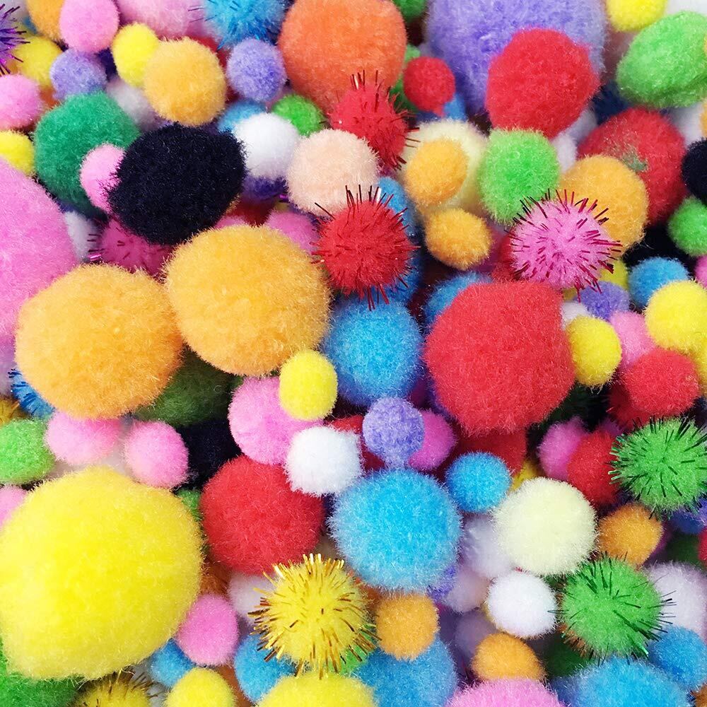 ポンポンボール内容:径1cmx1400個、径1.5cmx160個、径1.5cmx200個(錦糸付)、径2cmx120個、径2.5cmx80個、径3cmx40個。軽量でふわふわしたボール!