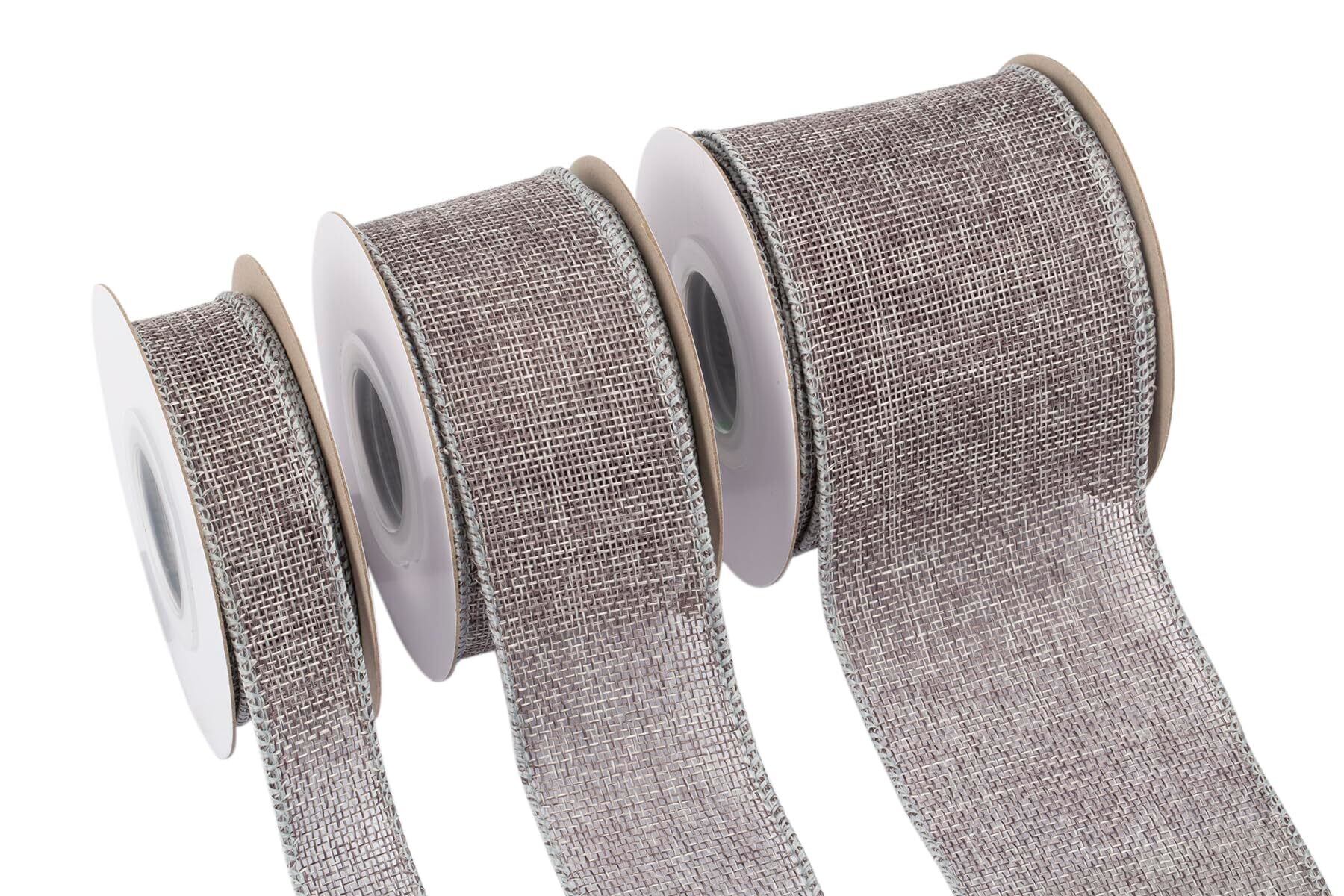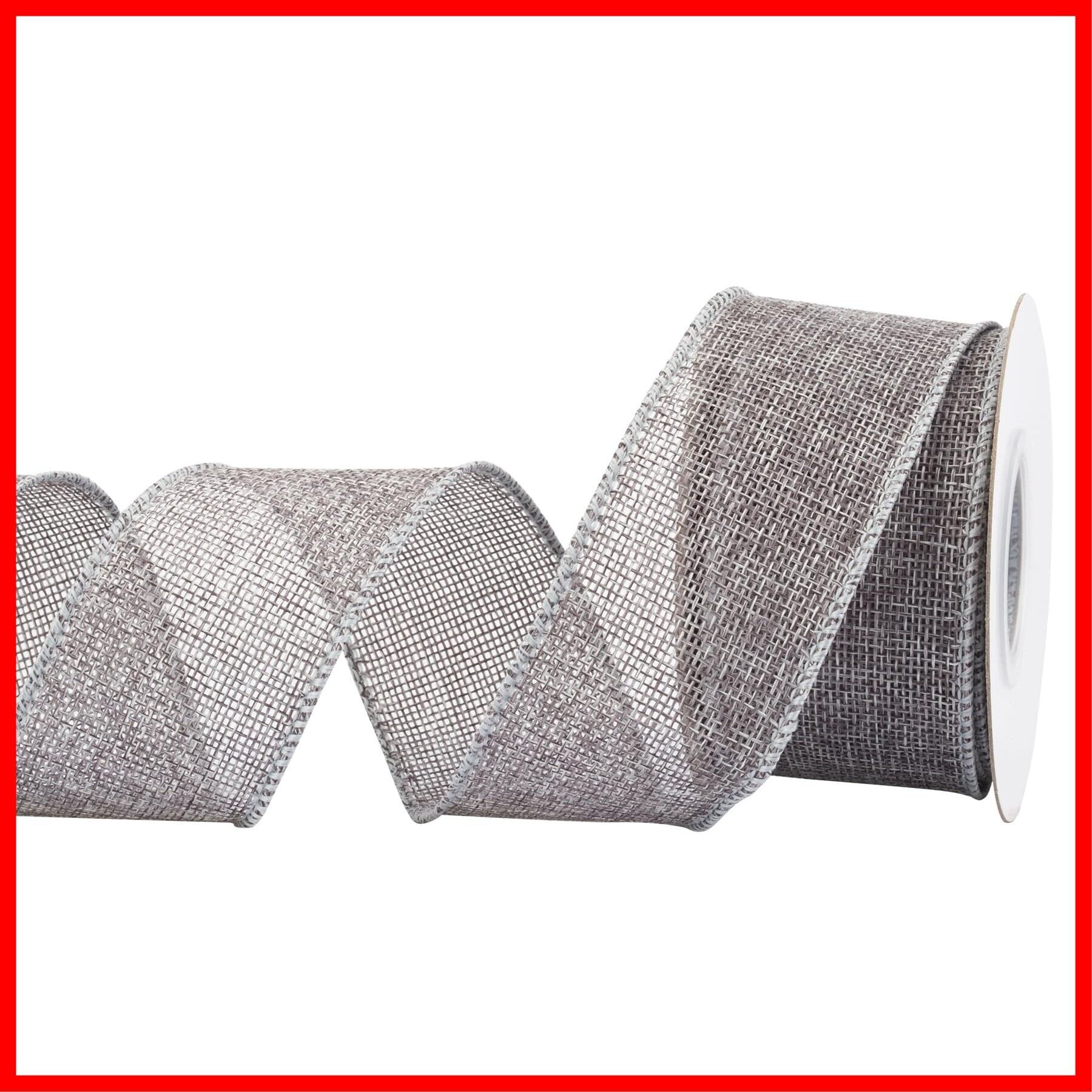 【Joycrosso】 バーラップワイヤエッジリボン、幅50mm x 9m巻き - ギフトラッピング・クリスマスツリー・手芸・花束・そして乡村風のレトロな装飾に最適です (灰)