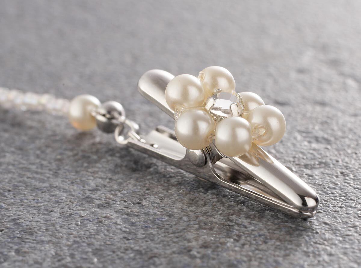 パールとラインストーンの可憐な小花と、細く煌くデリカビーズのチェーンがおしゃれ