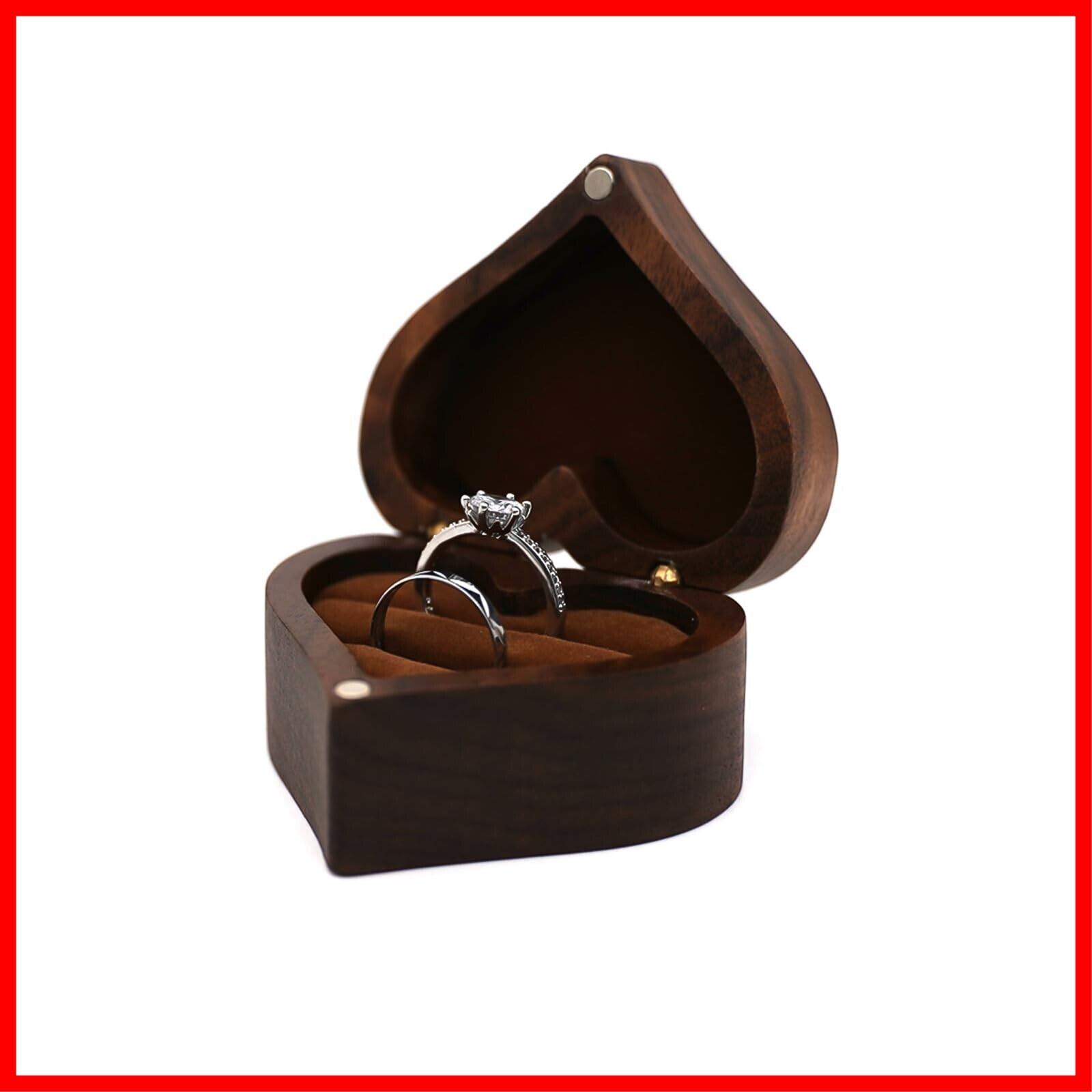 Coollooda 指輪ケース リングケース 指輪入れ 木製 ミニアクセサリーケース ハート型 指輪 ピアス 結婚指輪 小物入れ 携帯用 プロポーズ 婚約 誕生日 贈り物 ギフト 記念日 ジュエリー収納