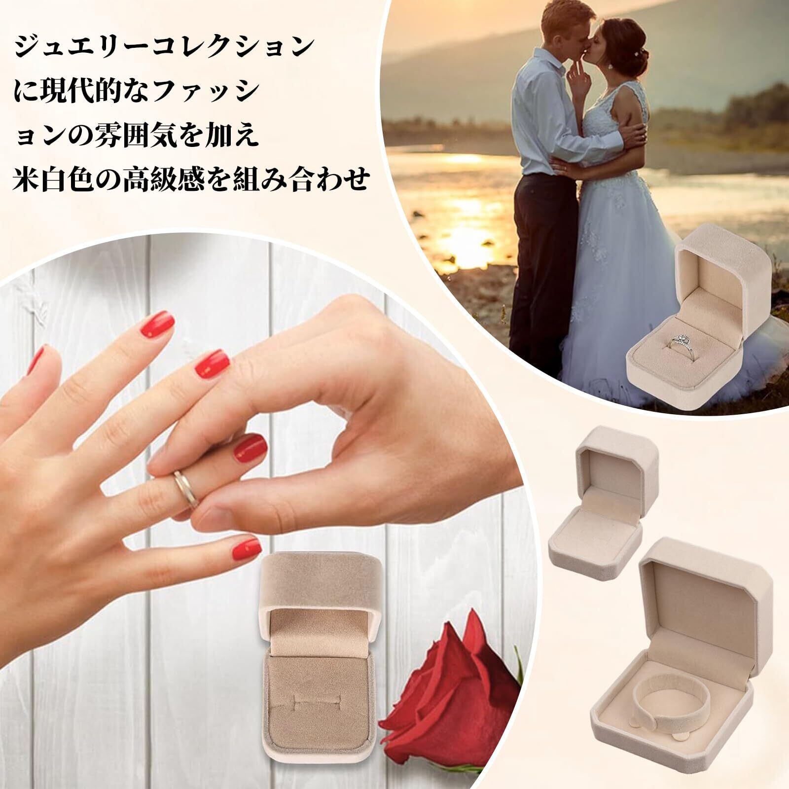 yowodana 指輪ケース【2個】リングケース ブレスレットケース 指輪入れ 婚約リングボックス バングルケース ジュエリーケース ベルベット 持ち運び 四角 箱 おしゃれ などに適当アクセサリー ジュエリー収納 プロポーズ 記念日 贈り物(ベージュ)