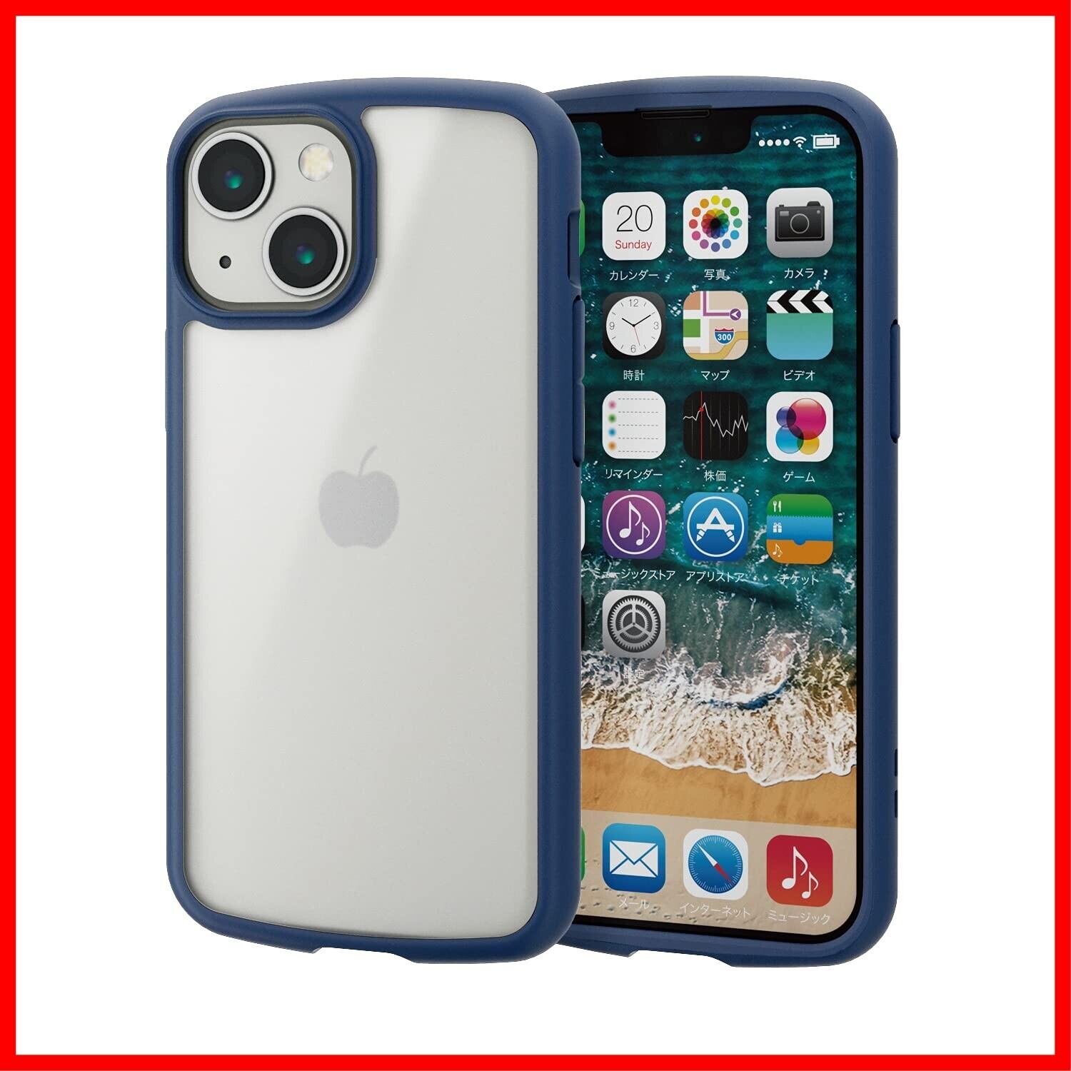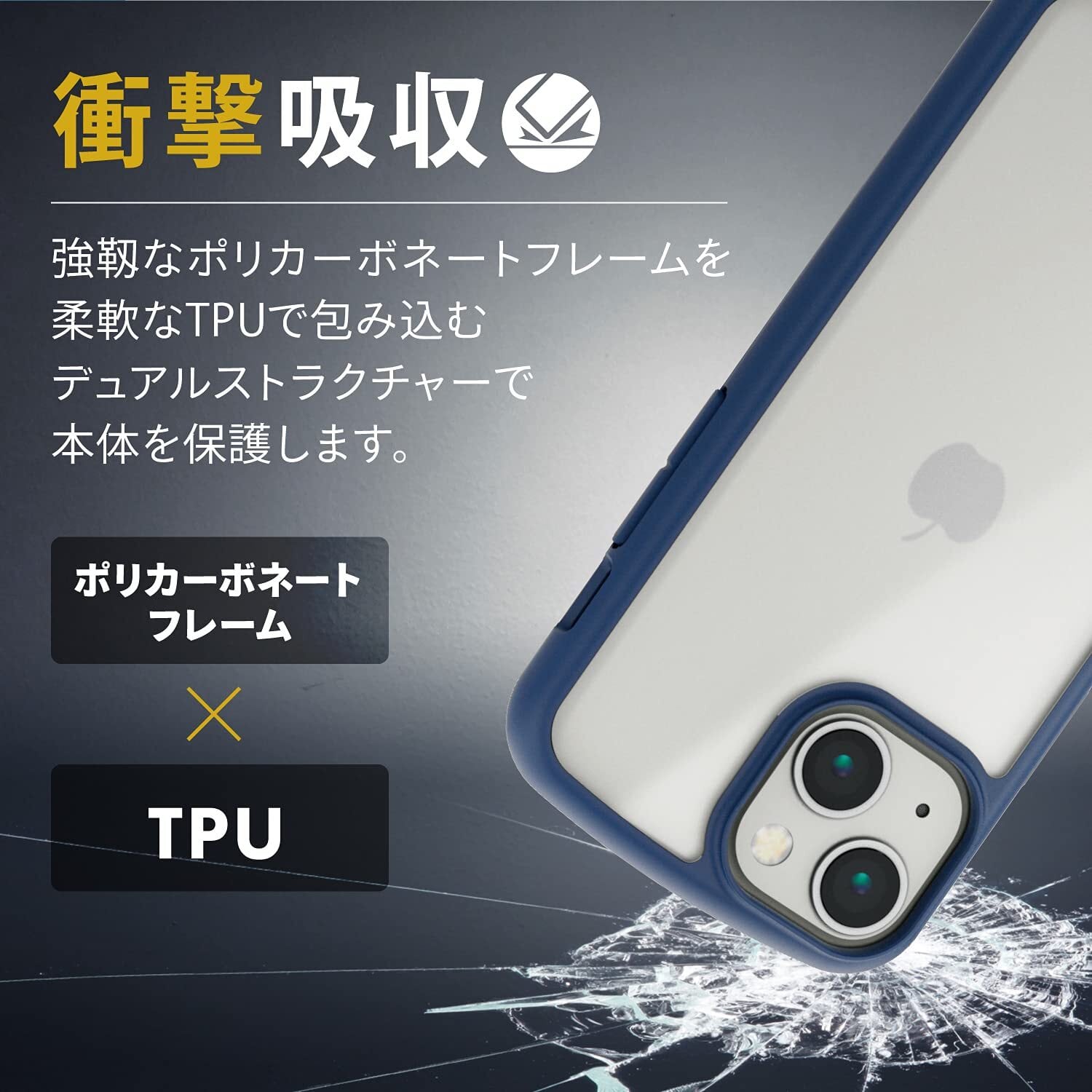 エレコム iPhone 13 mini/ハイブリッドケース/シルキークリア/ネイビー