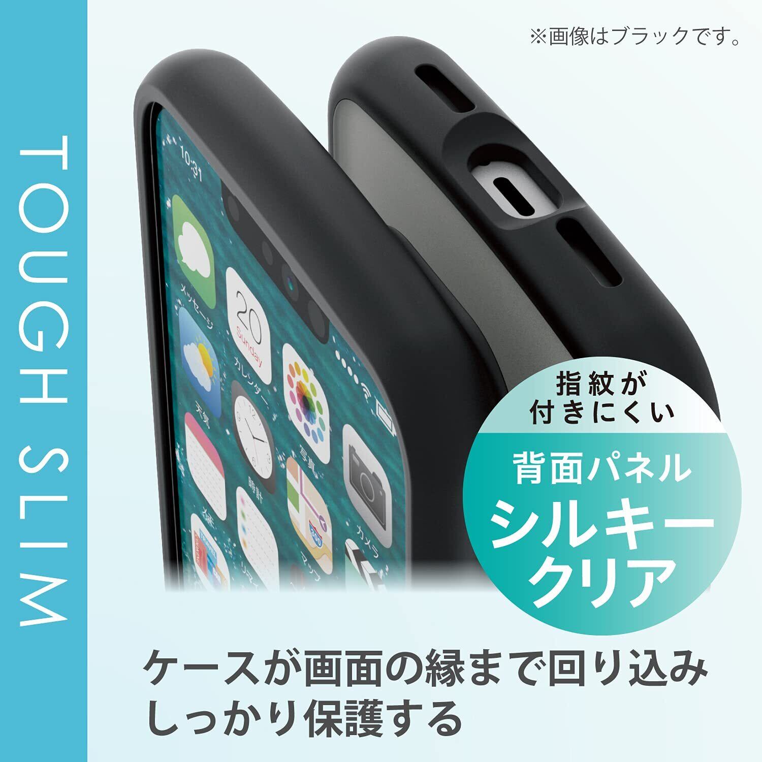 全周に配置した独自設計のエアクッションが衝撃を吸収し、背面には指紋の付きにくい特殊樹脂を採用した、iPhone 13 mini用TOUGH SLIM LITEケースです。