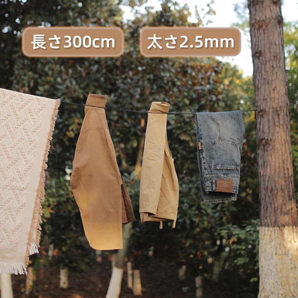 Renjzle 洗濯ロープ 物干しロープ 300CM 旅行 室内 屋外 携帯便利 アウトドア 防風 キャンプ 洗濯ひも 弾力 軽量