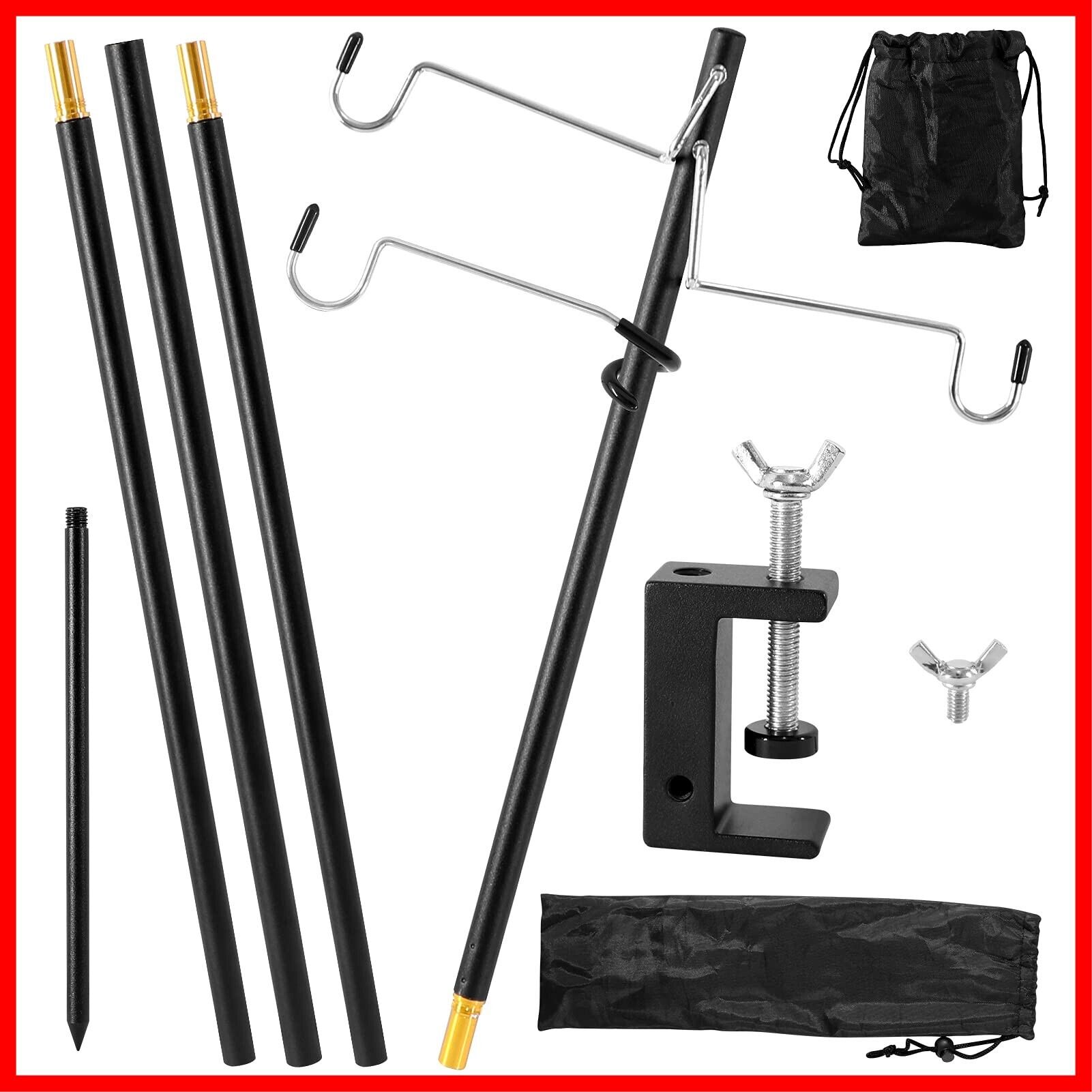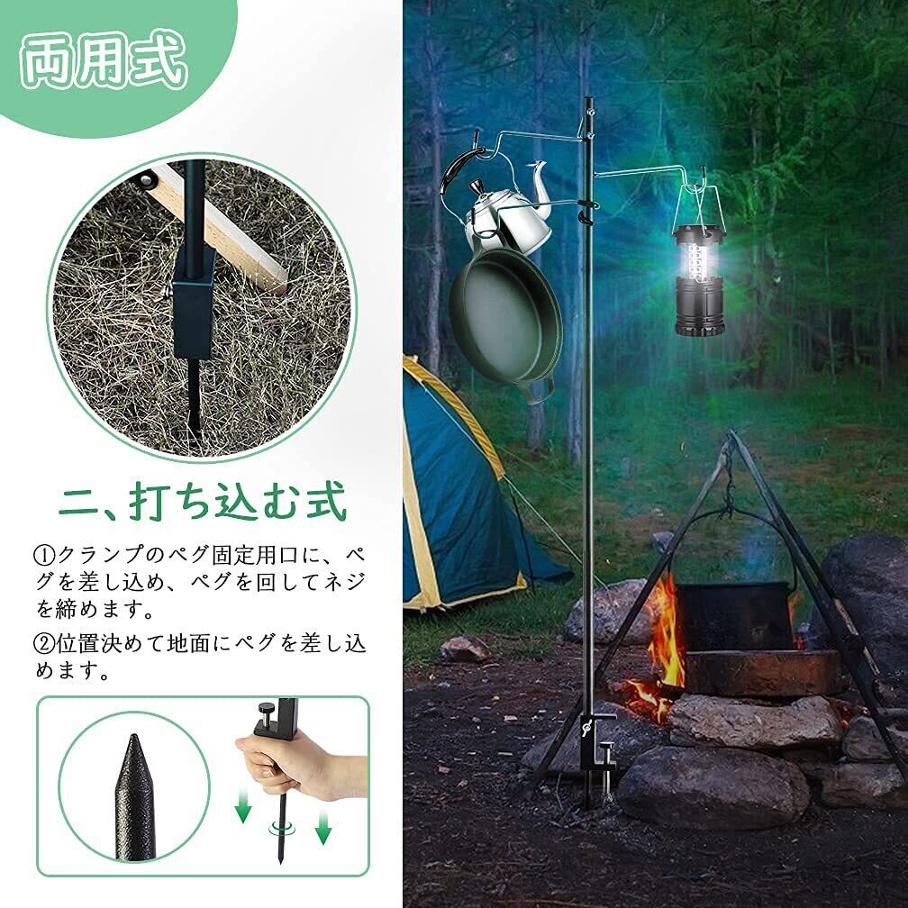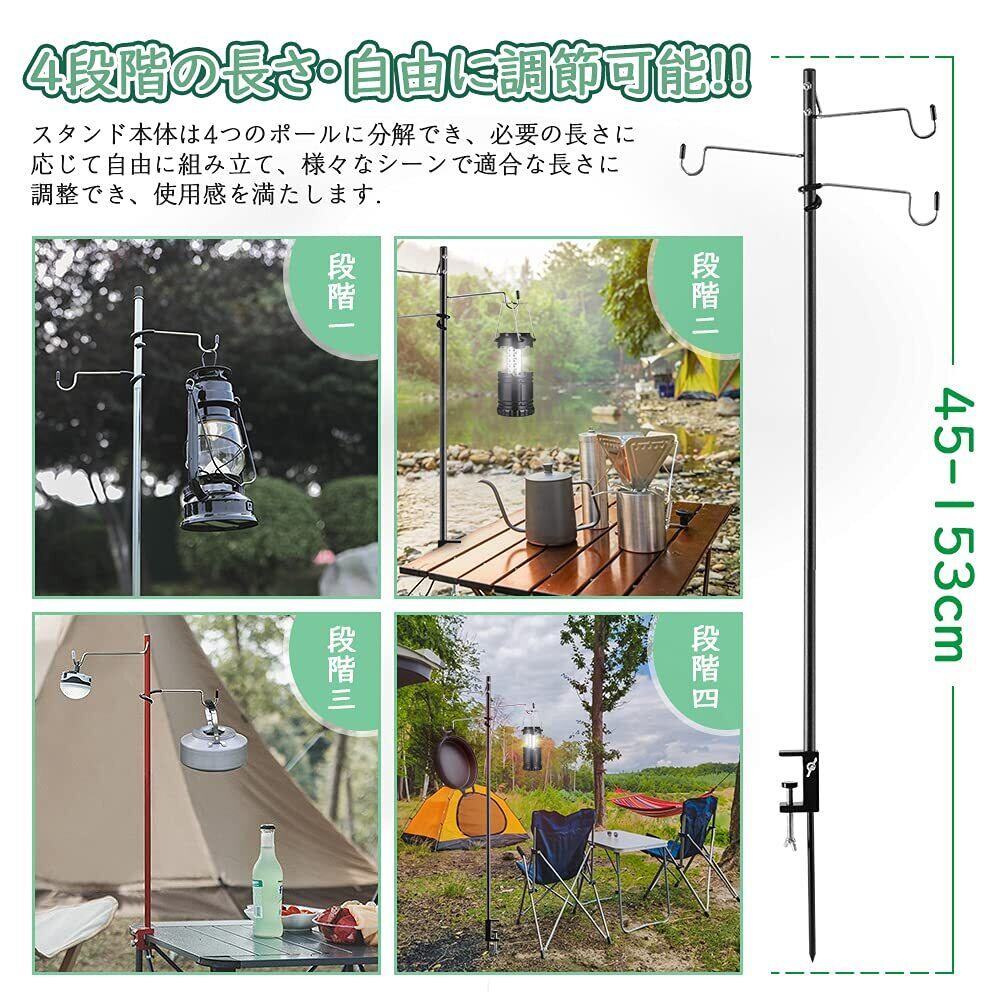 ランタンハンガー ランタンポール ランタンスタンド 両用式 打ち込み クランプ式 折りたたみ 4段階 高さ調整可 ランタンフック ペグ 付き 軽量 頑丈 アウトドア キャンプ 収納袋付き By Kcmell