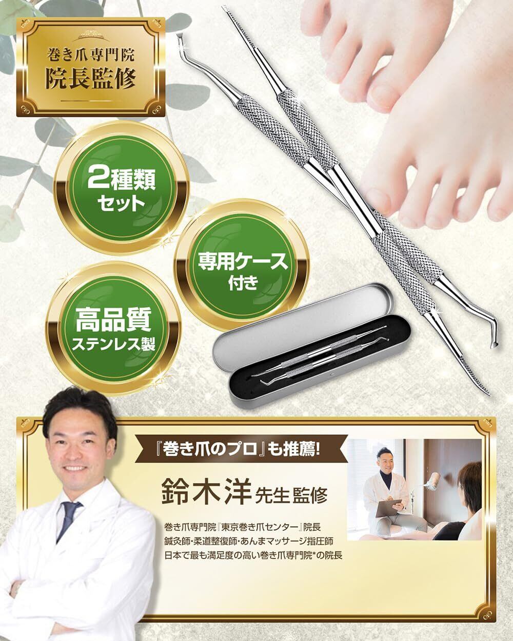 【巻き爪の専門家が監修】足の快適工房の爪垢取りは、巻き爪専門院院長の鈴木洋先生が監修。専門知識と経験に基づき、「安心して手軽に使える」ことを追求しました。爪垢取りと爪やすりのセット商品で、巻き爪ケアにも有効です。【専用ケース付き】「清潔に保管したい」というお声から、専用ケースをお付けしました。紛失防止・旅行先への携帯性に役立ちます。一生モノとして大切にお使いいただけます。