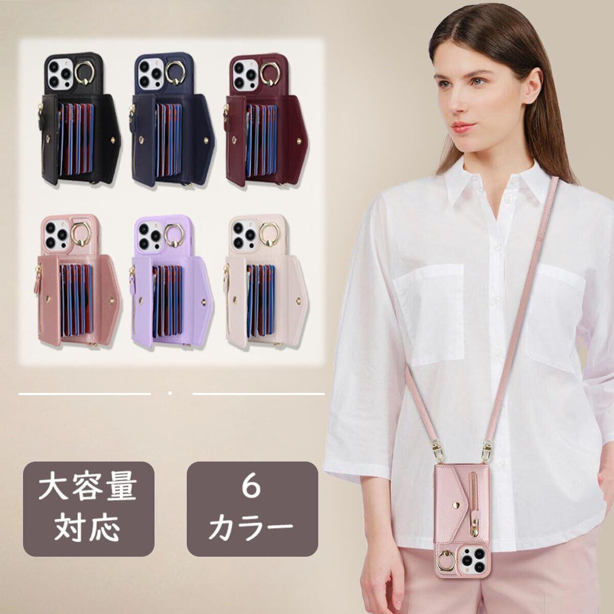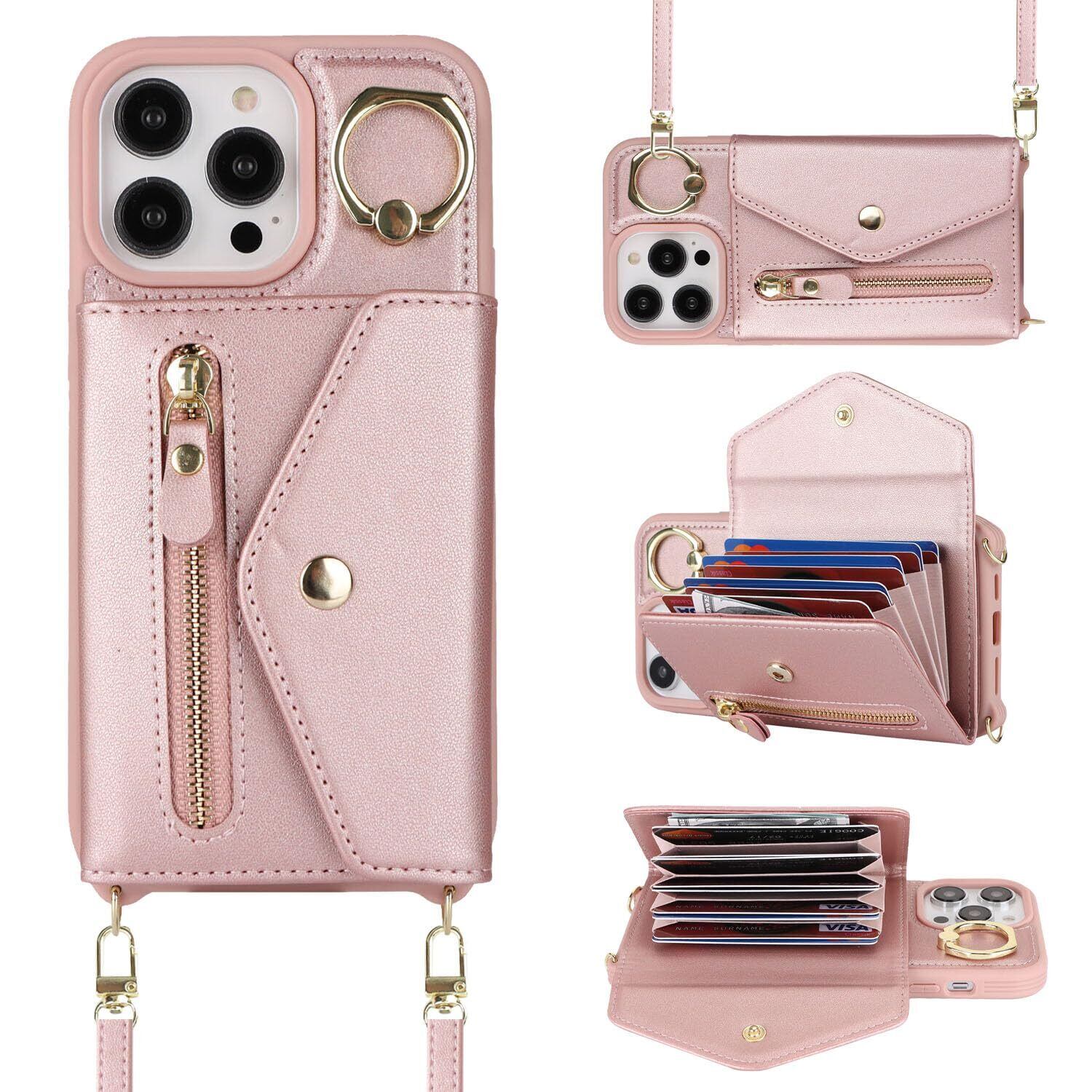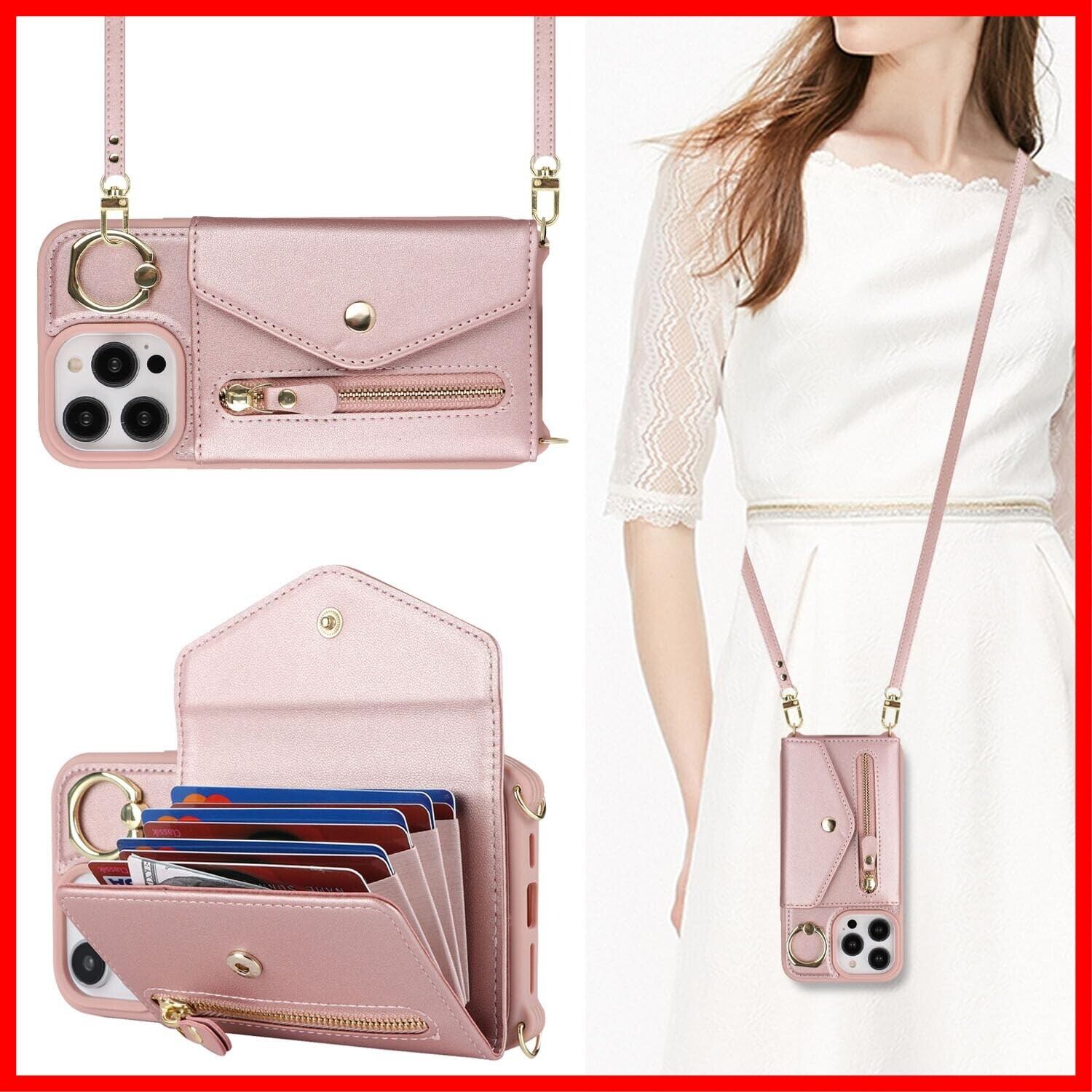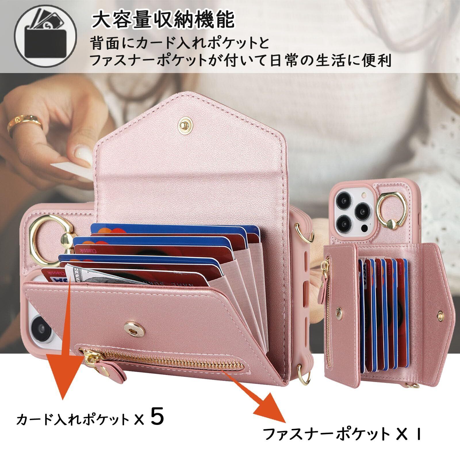 【Hamany】 いphone13 pro ケース スマホ ショルダー iphone 13 pro ケース 手帳型 ショルダー おしゃれ カード収納 大容量 背面 リング付き スタンド機能 アイホン13プロケース 耐衝撃 耐久性 女性 肩がけ 首掛け 斜め掛け ストラップ付き 長さ調整可能 カバー -ローズゴールド