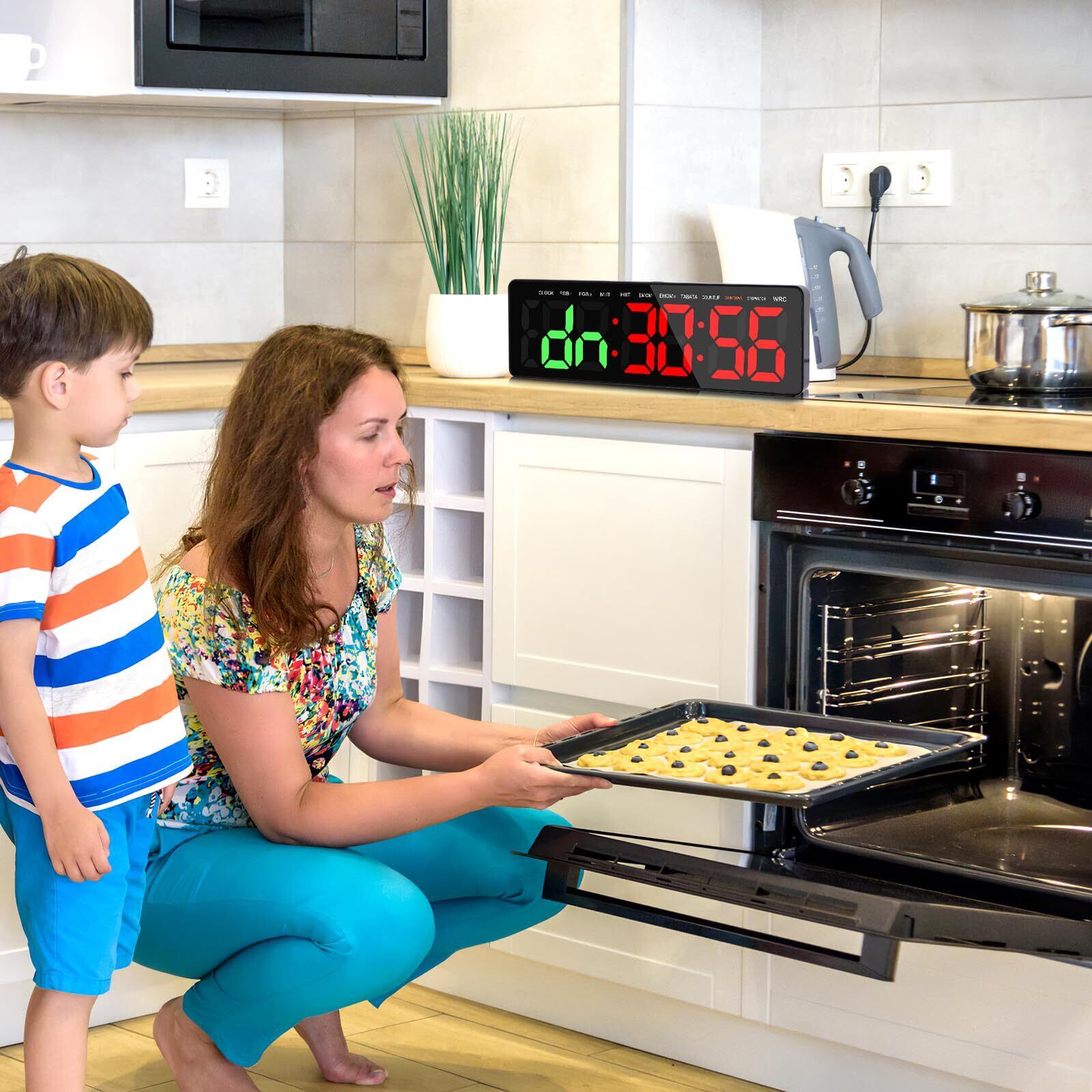 多機能タイマー:16.5インチ大型LEDタイマー、本体は長さ40cm * 幅12.7cm、8.7cm/3.4インチの大きなフォントで、ジム、会議室、または自宅でも読みやすくなっています。壁掛けデジタル時計としてショッピングモールやスーパーマーケットにも設置できます。
