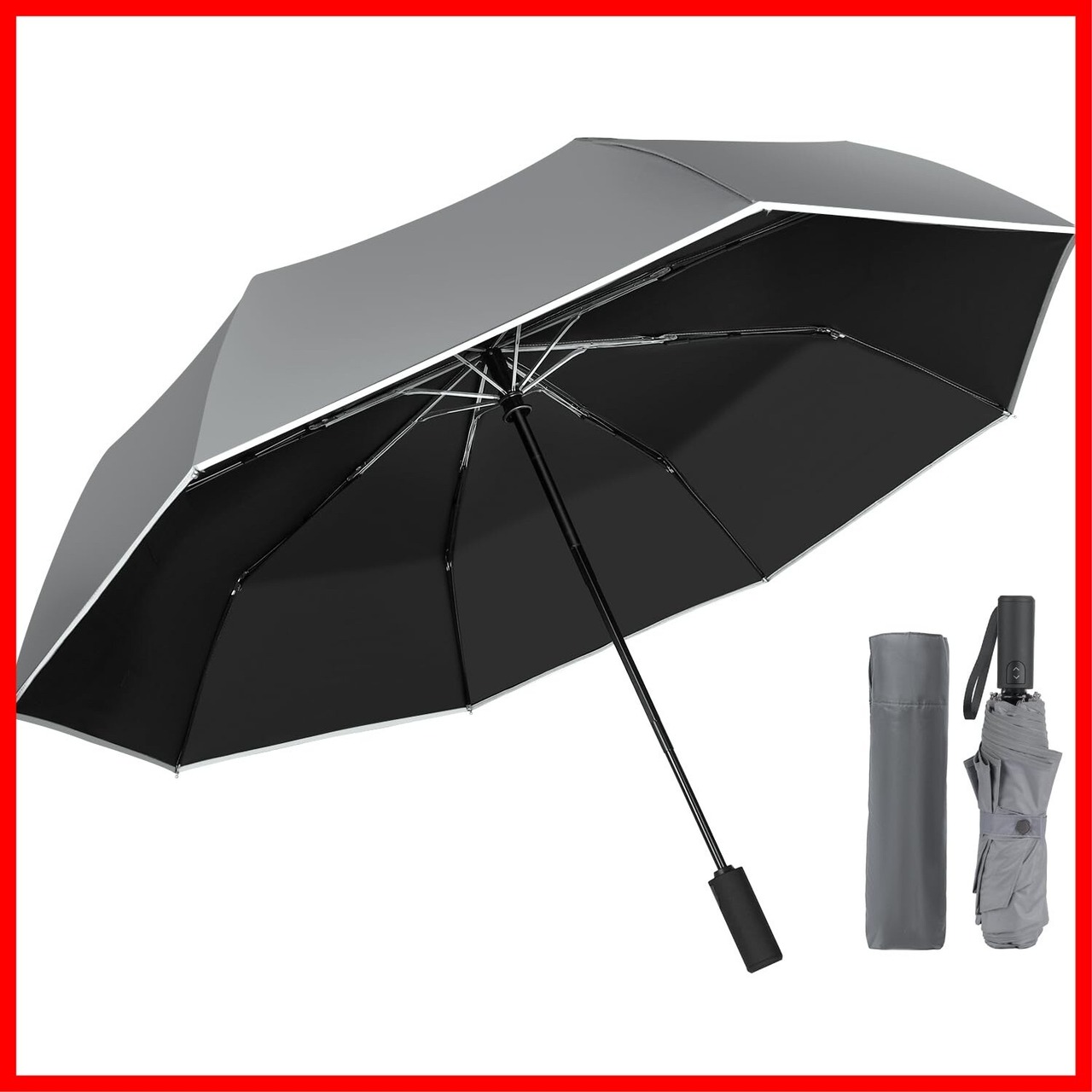 MOTIFUN 折りたたみ傘 ワンタッチ 自動開閉 大きいサイズ 日傘 【 210T 超撥水・ 8本骨 晴雨兼用】紫外線遮断 uvカット 軽量 反射テープ 耐風 豪雨対応 折り畳み傘 梅雨対策 台風対応 丈夫 おりたたみ 折畳傘 メンズ 収納ポーチ付き | hananoki