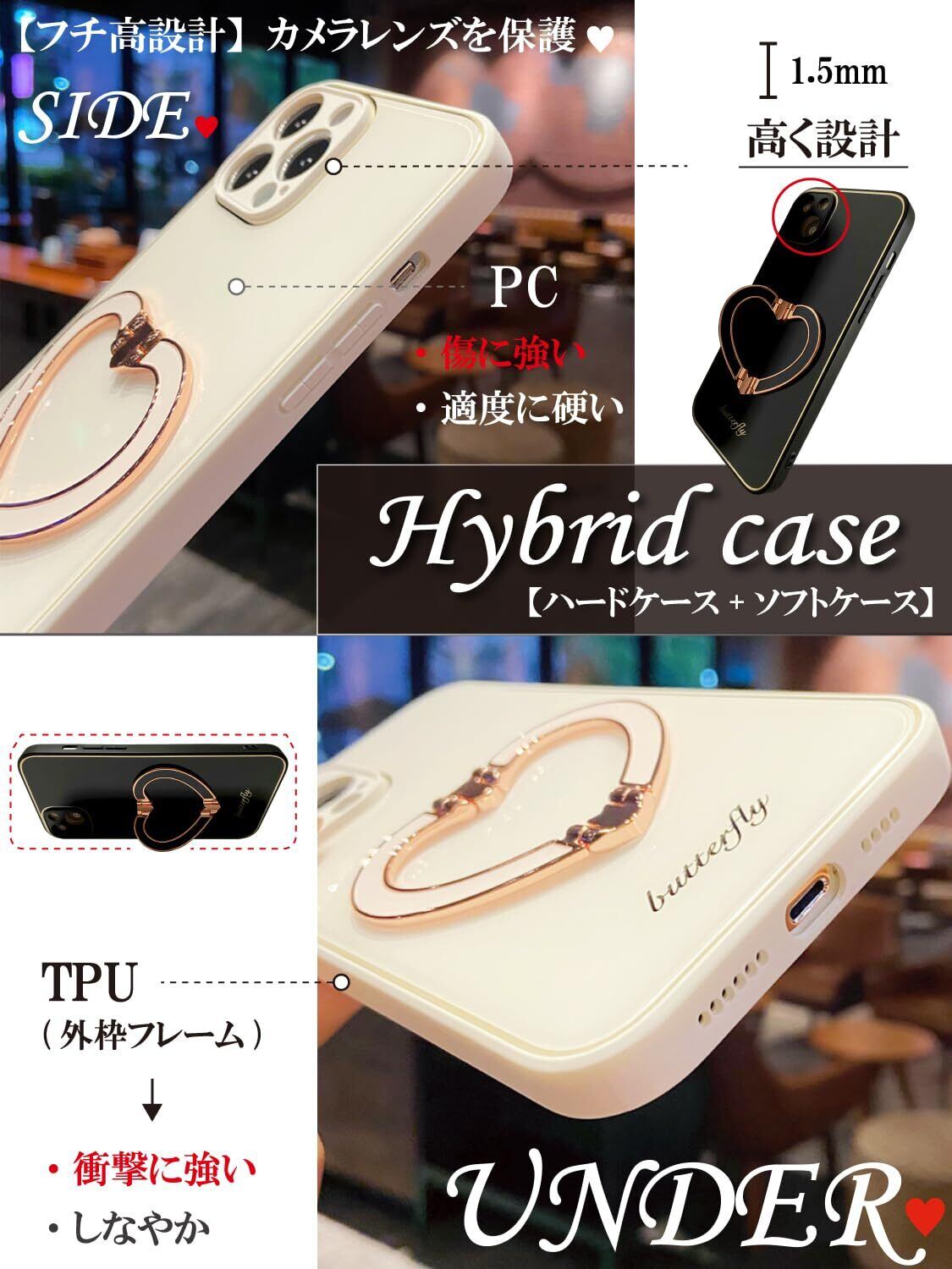 ハート リング付き ケース いPhone 14 Pro 対応 白 おしゃれ 韓国 大人 可愛い リング スマホ 14 プロ 用