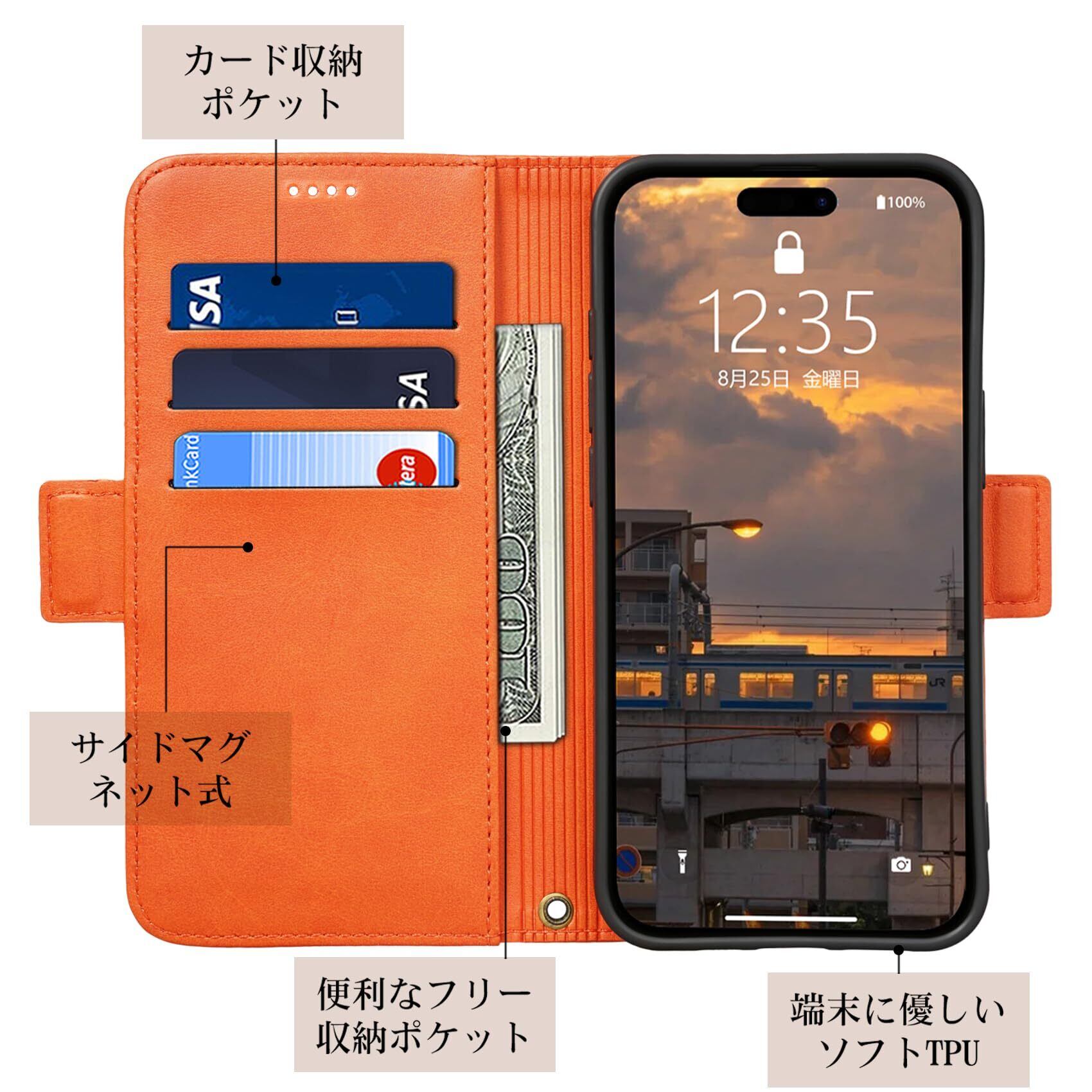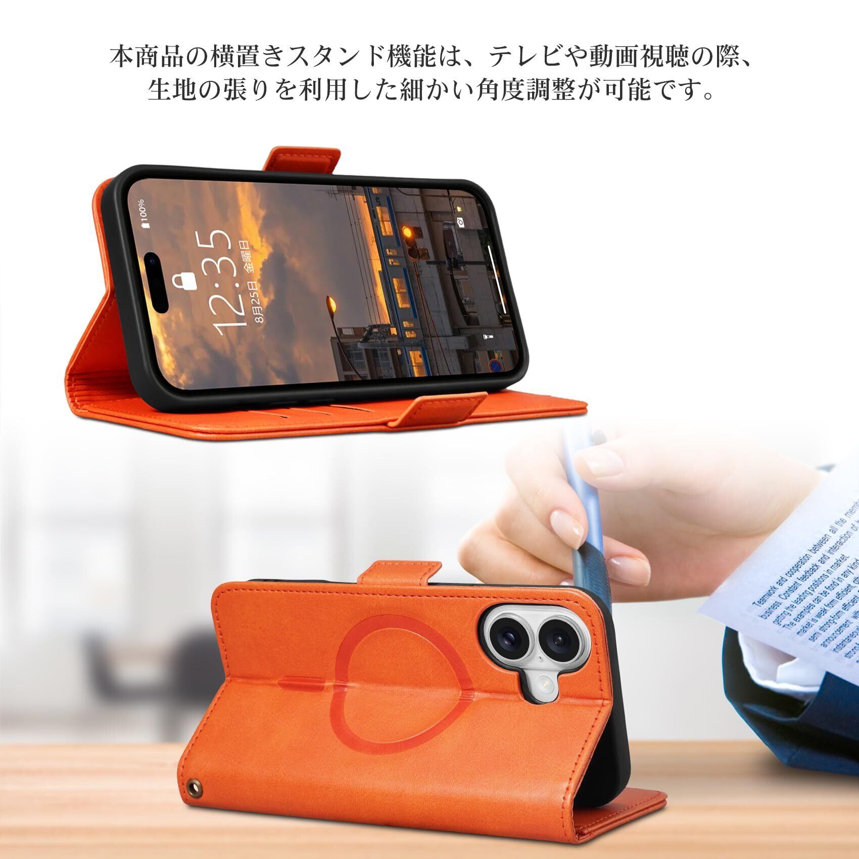 【Keallce】 iPhone 16 ケース 手帳型 MagSafe対応 いphone16 手帳型 ケース iPhone16 スマホケース アイフォン16 カバー ワイヤレス充電 専用ストラップ付き スタンド機能 カード収納 サイドマグネット式 PUレザー 全面保護 贈り物 ブランド マグセーフ対応 iPhone16 6.1inch W2M オレンジ | hananoki