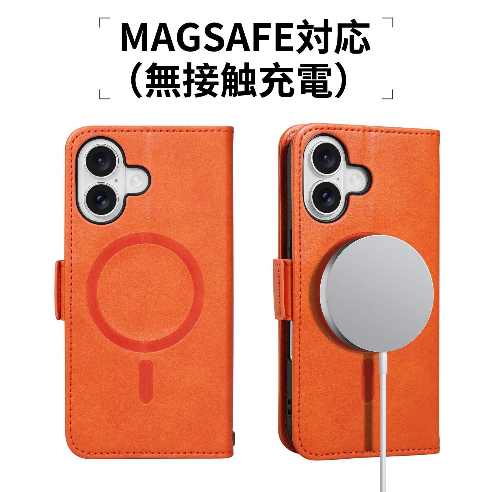 【Keallce】 iPhone 16 ケース 手帳型 MagSafe対応 いphone16 手帳型 ケース iPhone16 スマホケース アイフォン16 カバー ワイヤレス充電 専用ストラップ付き スタンド機能 カード収納 サイドマグネット式 PUレザー 全面保護 贈り物 ブランド マグセーフ対応 iPhone16 6.1inch W2M オレンジ