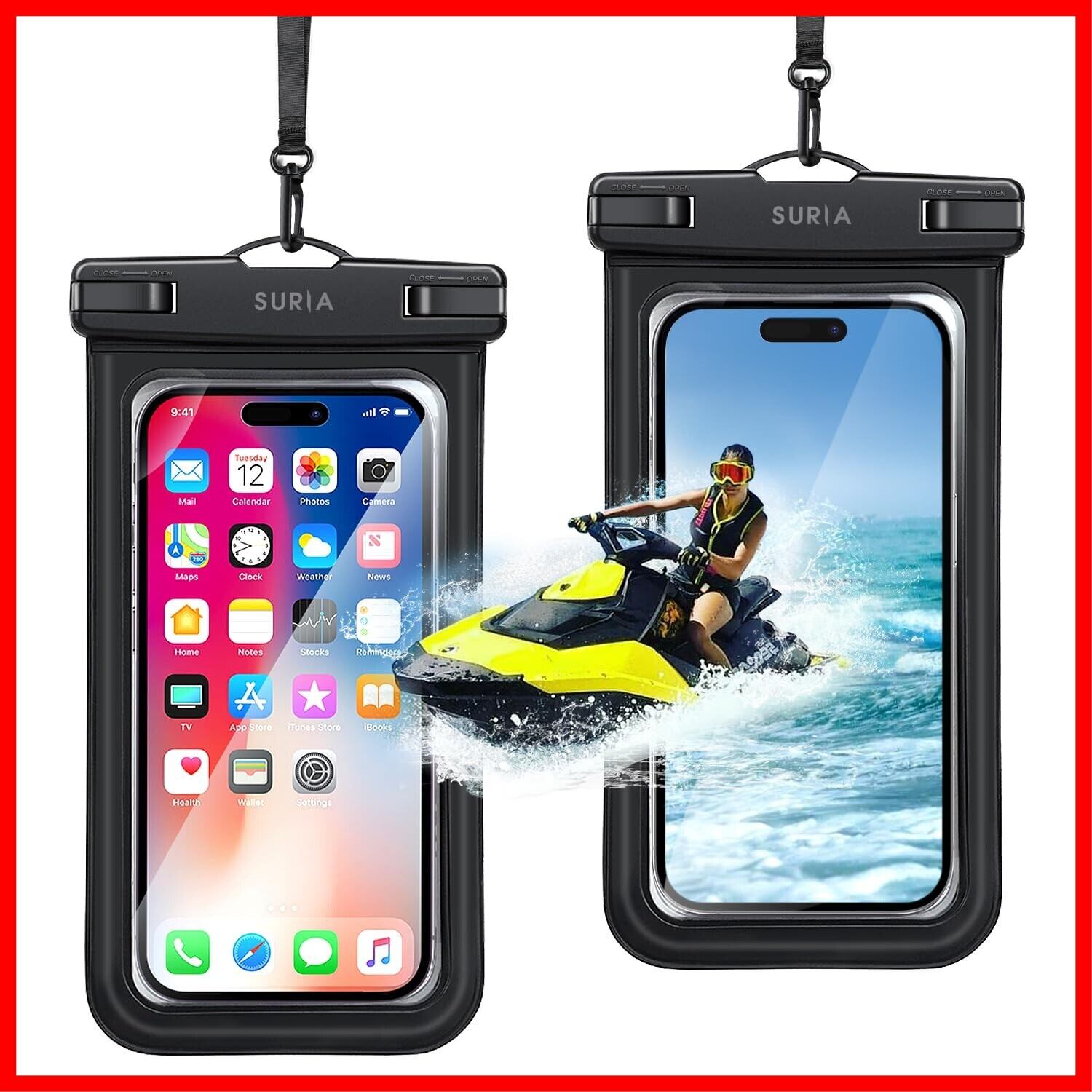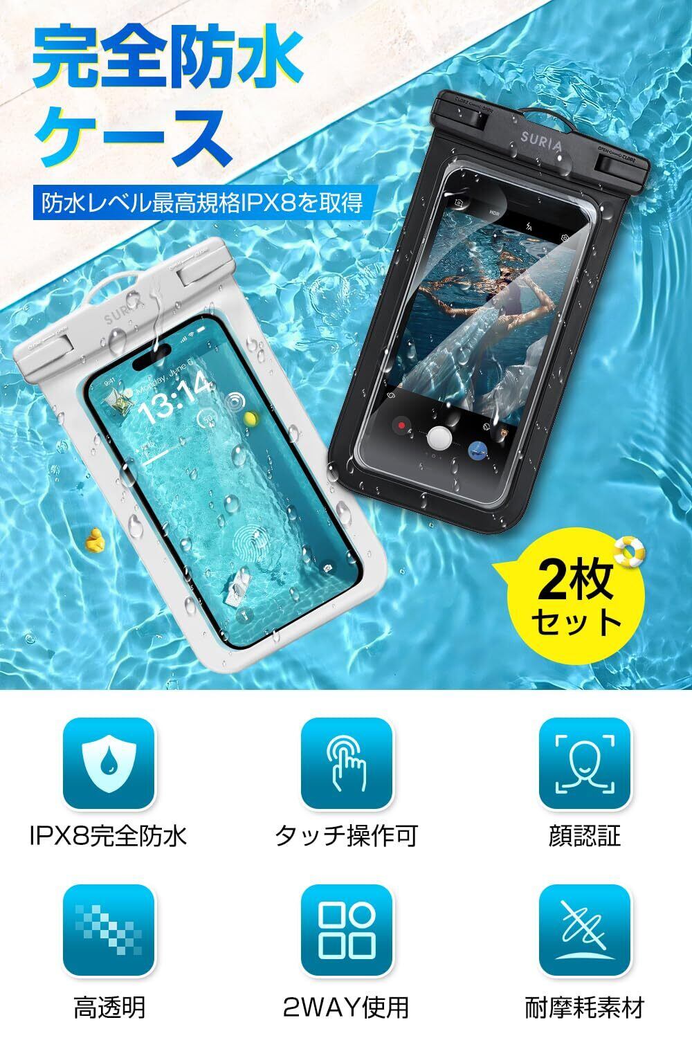 【新設計・2枚セット】 スマホ 防水ケース IPX8 完全防水スマホケース 首かけ 両用 指紋認証/顔認証対応 タッチ可能 ストラップ付き iPhone/Android各種スマホ対応 携帯防 水ケース 気密性 水中撮影 通話 高透過率 お風呂 海 プール 釣り iPhone15/14/13/12/11 X XR XS 8 7 6.5インチまでに適応 (ブラック(二枚))