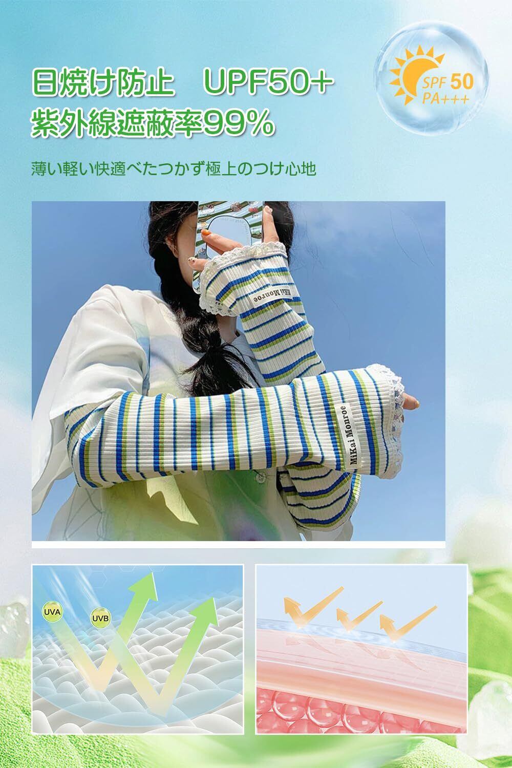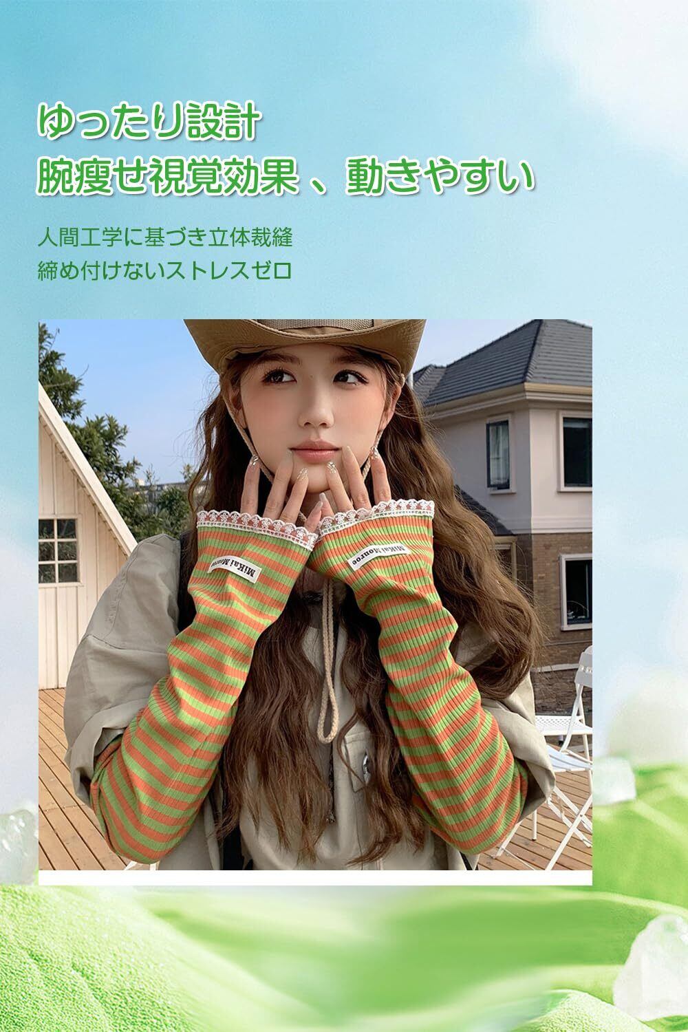 [WindTour] アームカバー レディース UVカット 夏 日焼け防止 アームスリーブ【UPF50+・紫外線対策・ゆったり・手の甲までカバー・】レディース UVカットアームカバー 日焼け止め UV腕カバー 日焼け対策 指穴あり レディース メンズ 男女兼用 (ボーダー-ピンク) | hananoki