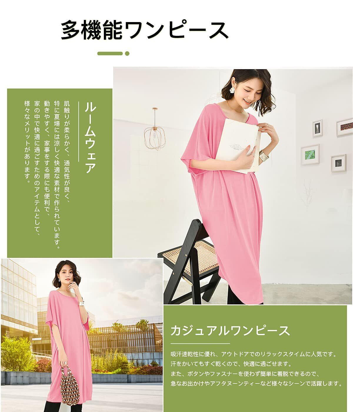 [§DAY CLOTH∞Daycloth] ワンピース レディース ルームウェア セット 夏 2枚組 部屋着 大きいサイズ 体型カバー 吸汗速乾 半袖 5分袖 無地 軽くて薄い シンプル モダール 超弾性 部屋着 洗濯機洗い可 室内服