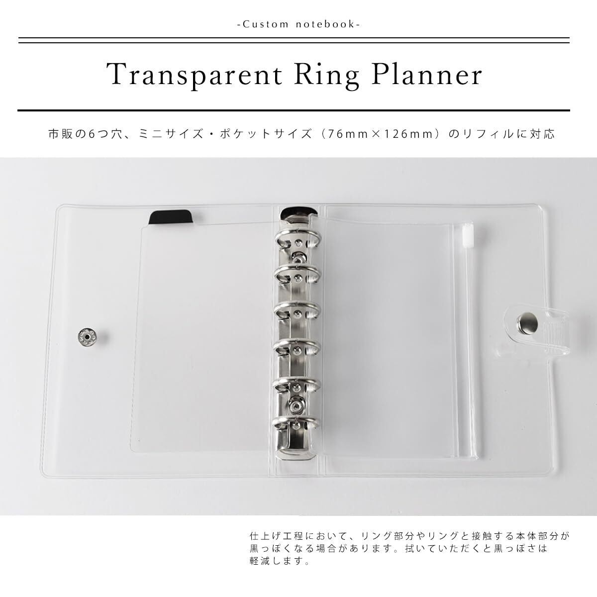 【シンプルな美しさ】 とってもシンプルな透明システム手帳。お好きなタイプのリフィルを入れ、あなた好みの使いやすいシステム手帳を作れます。