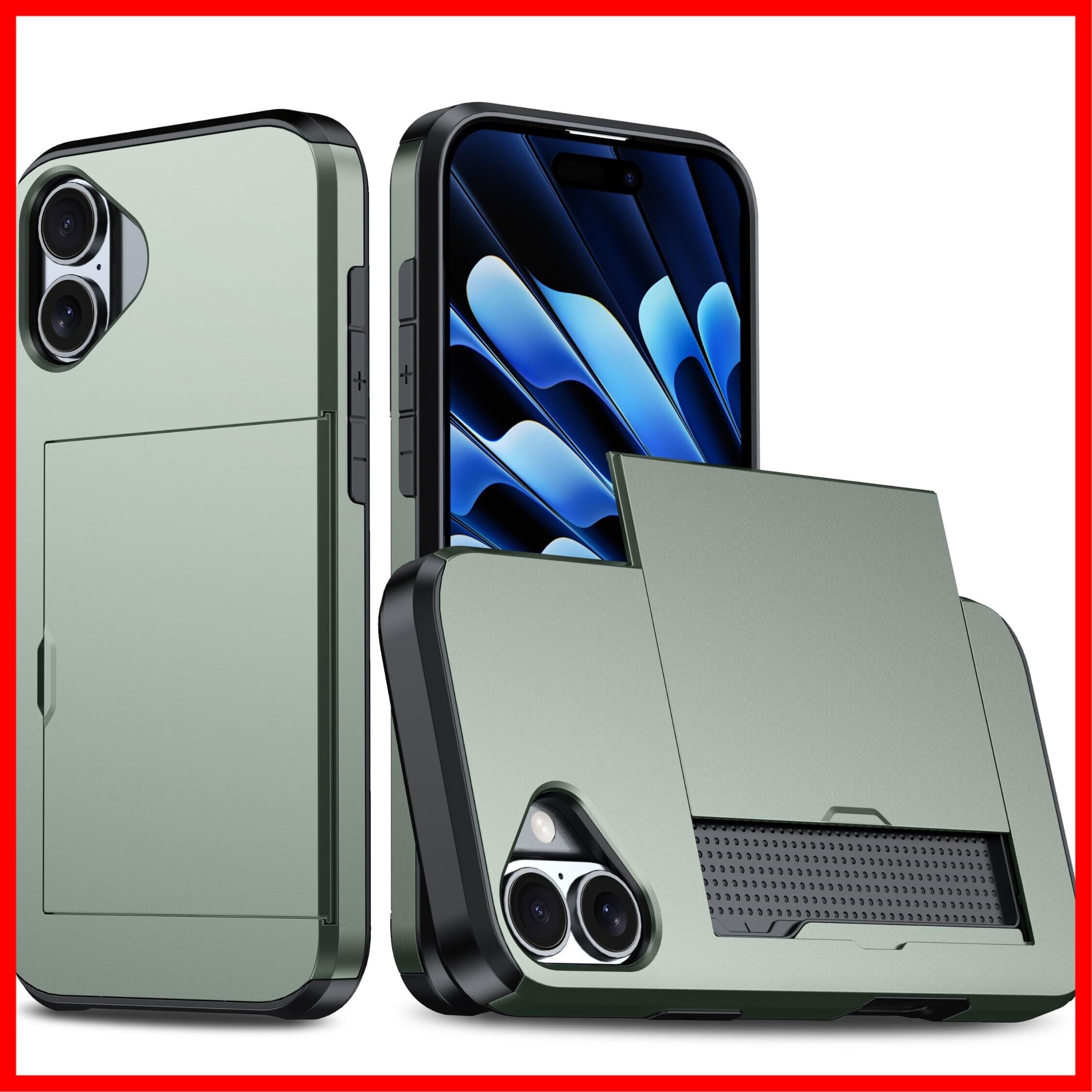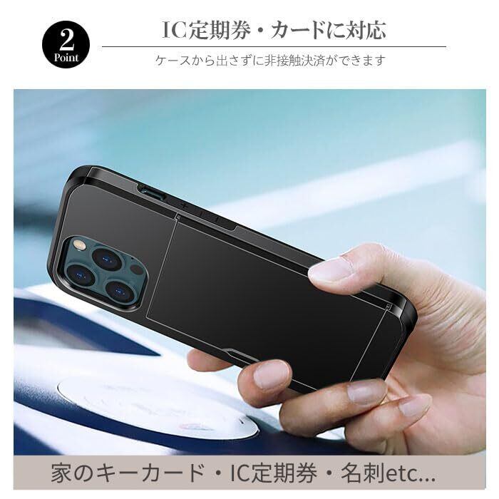 [La Momo] 互換品 iPhone16 ケース 背面カード 収納 スライド式 カード収納 iPhoneケース アイフォン15 スマホカバー 耐衝撃 吸収 防塵 ICカード入れ 耐久性