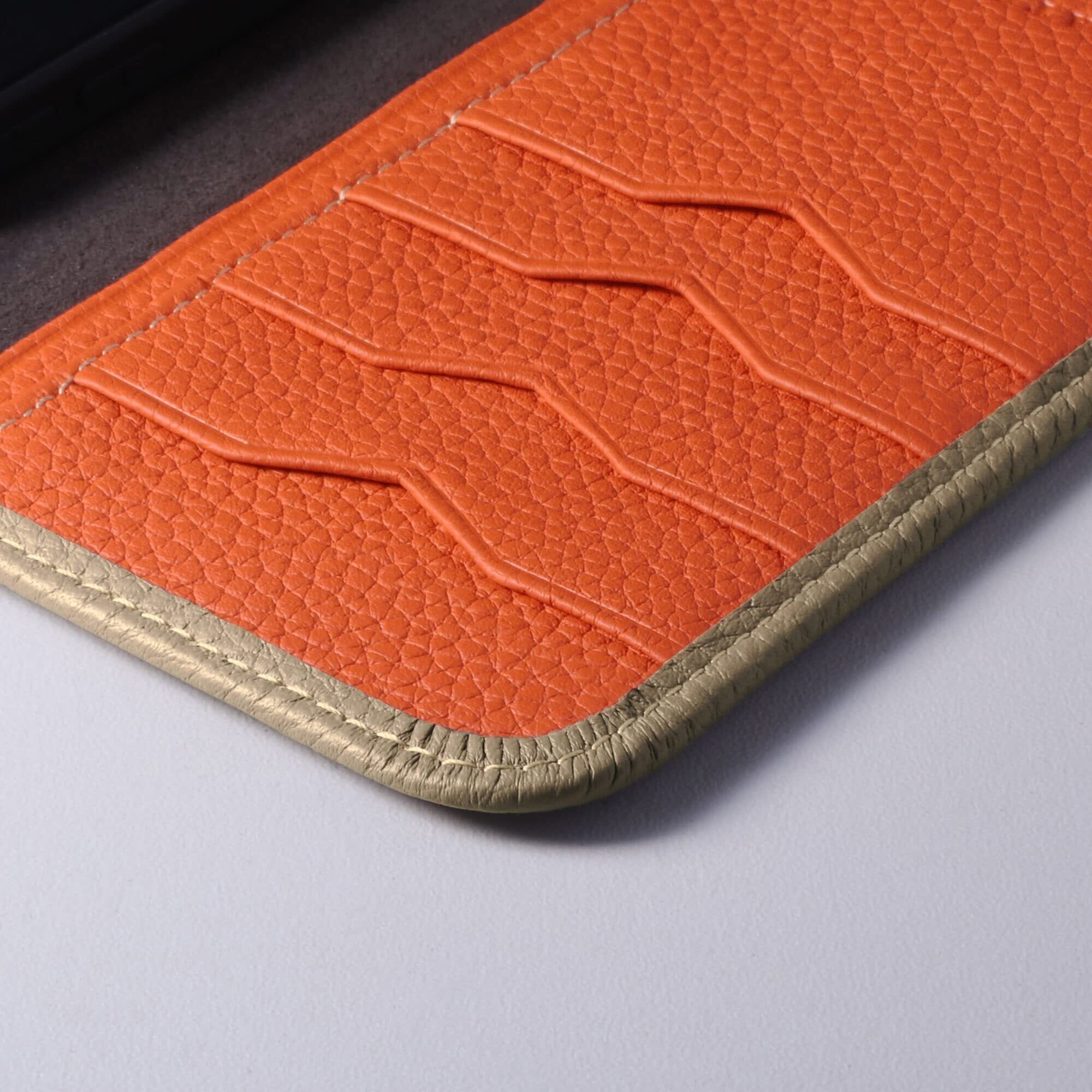 HANATORA iPhone12ProMax ケース 手帳型 本革 スマホケース スマホ スタンド コードホルダー 付き シュリンクカーフレザー ギフト マグネットなし グレージュ + オレンジ PH-12ProMax-Grege-OG ギフト 誕生日ギフト 女性 彼女 お母さん お父さん 人気商品 30代 40代 50代 60代 70代 | hananoki