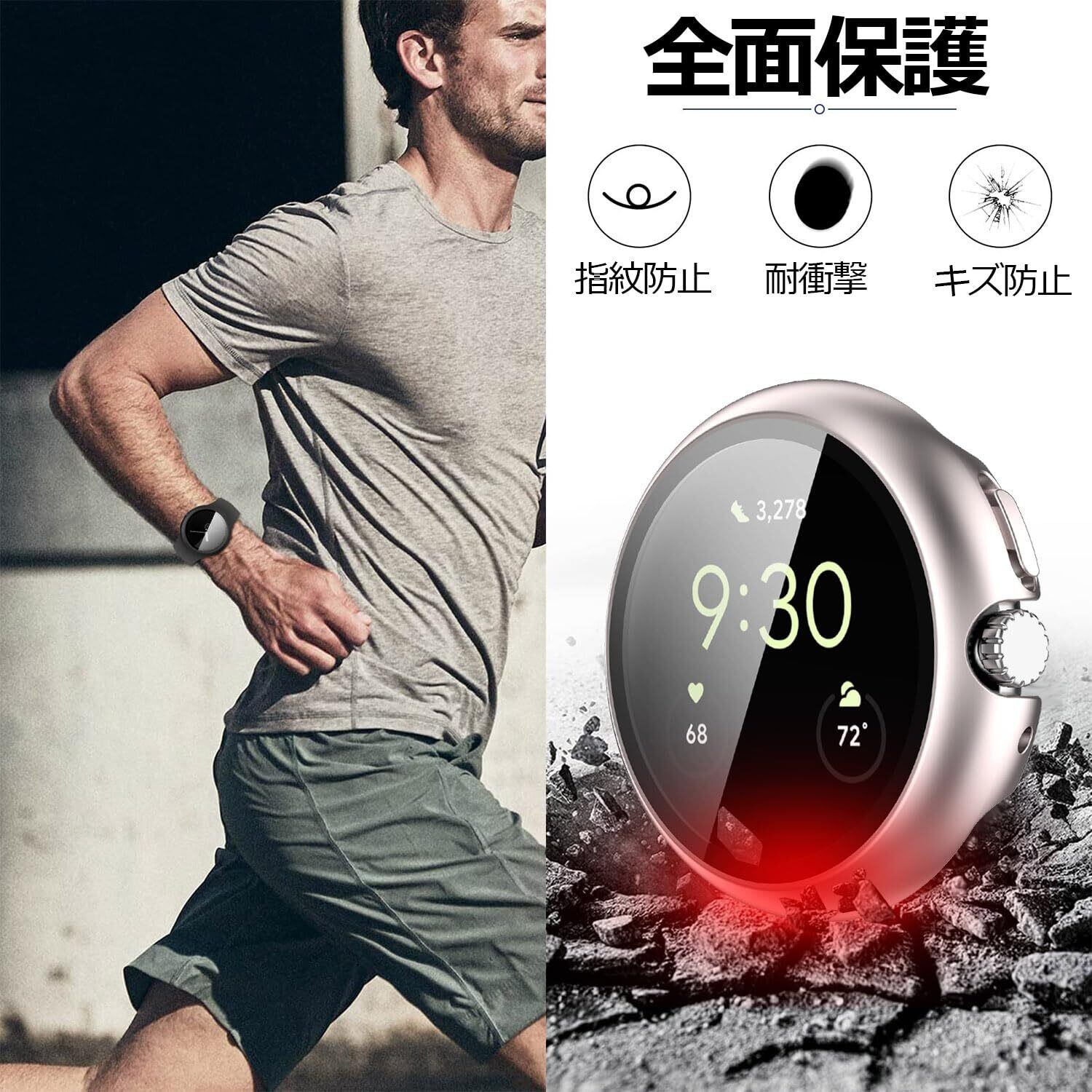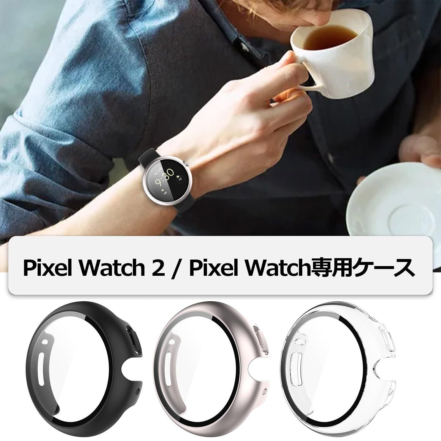 「Pixel Watch 2/Pixel Watch ガラスフィルム+保護カバー一体型」機能性とデザインを兼ね備えて、優れたPixel Watch 2/Pixel Watch ケースです。Pixel Watch 2 に合わせて丁寧に作られたフレームなので、違和感なく本体にジャストフィット!日常で起きる損傷リスクを高強度なフィルム層が防ぎ、液晶をキズから保護します。