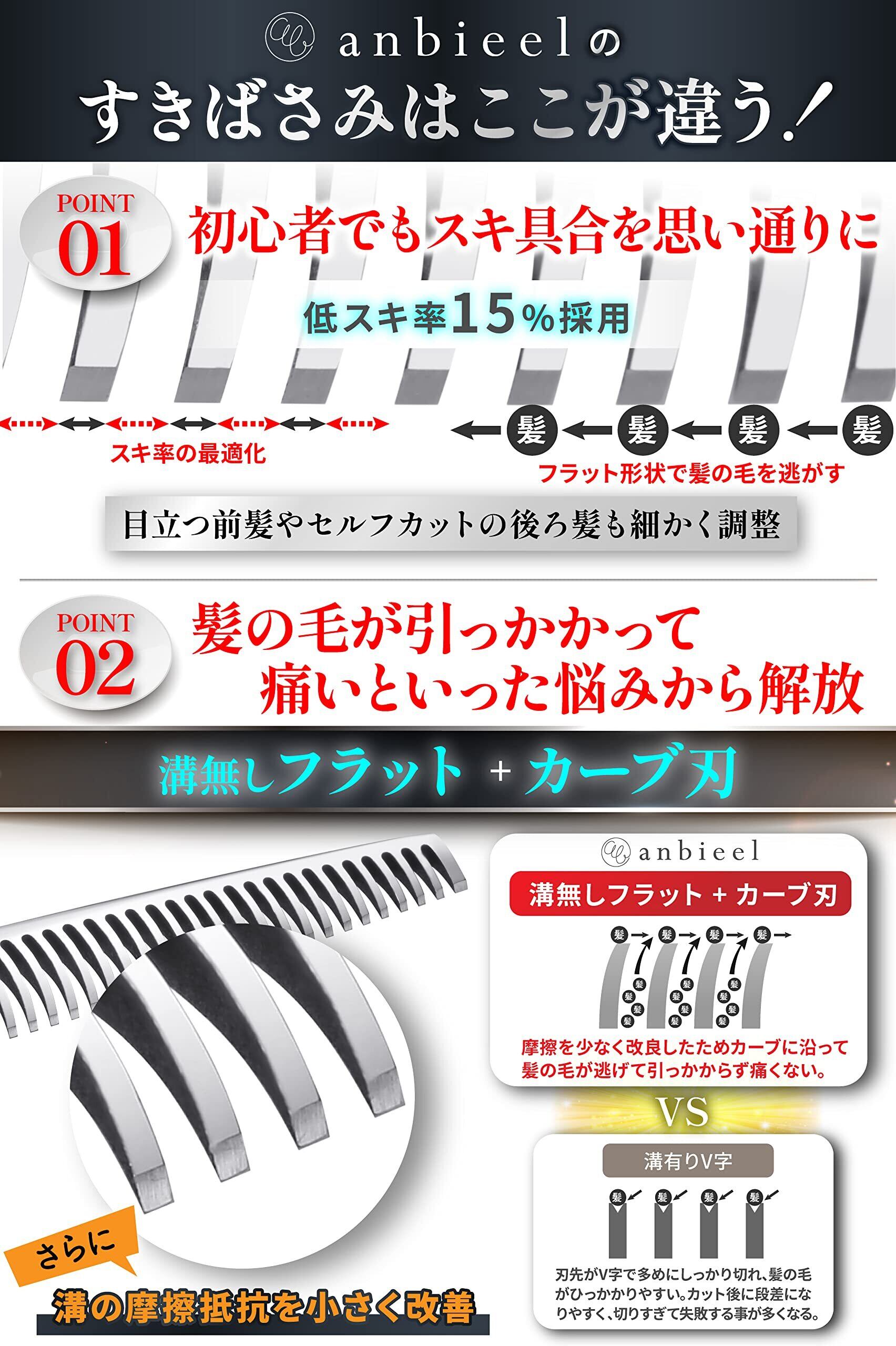 anbieel (現役プロ美容師が総監修) 散髪 ハサミ すきばさみ セット 低 すき率 髪切りハサミ セルフカット