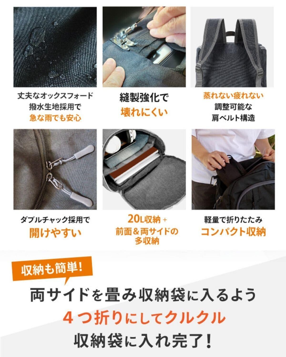【コンパクトでも大容量】容量20Lでお買い物時のエコバックや登山用、出張や旅行時など様々な場面でお使いいただけます。