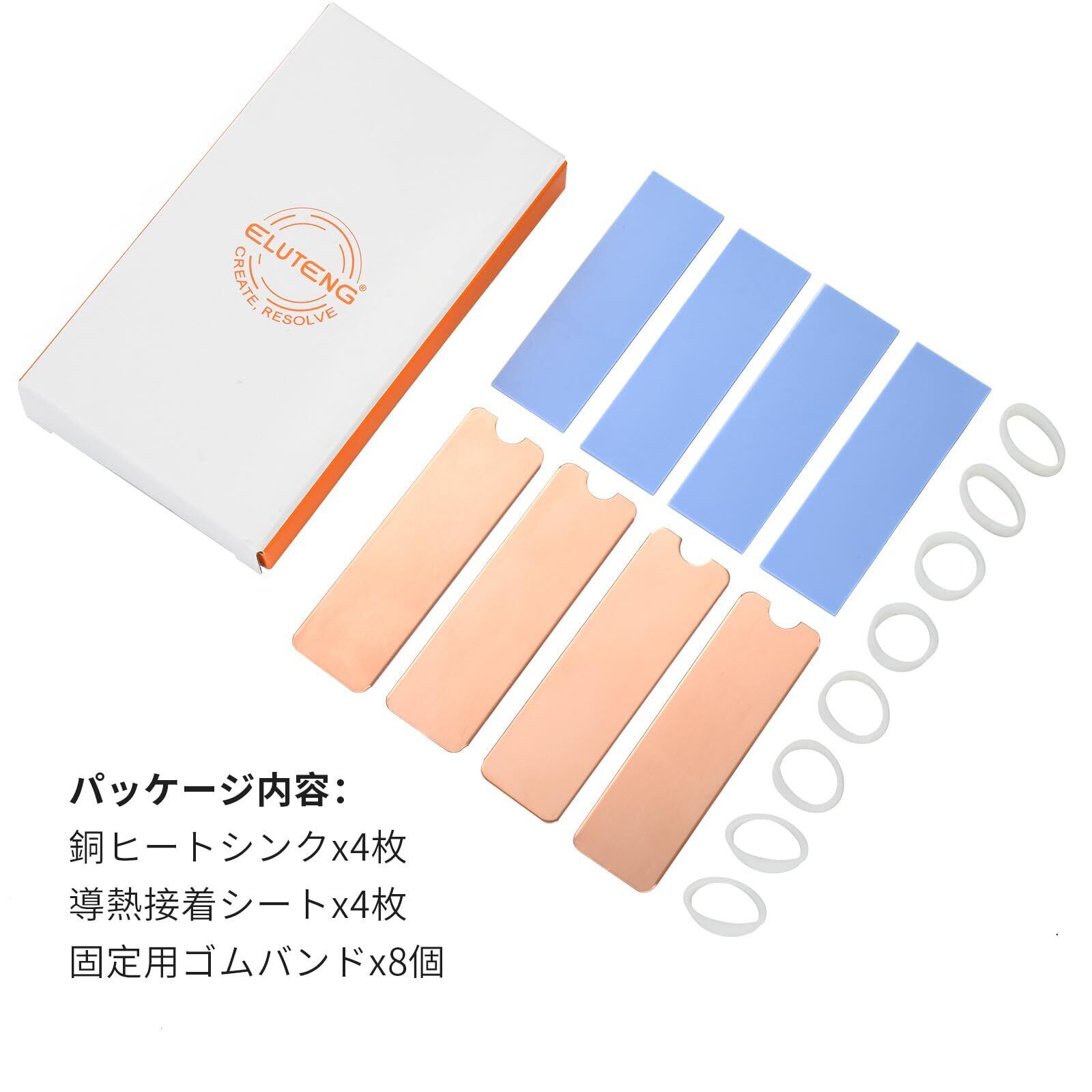 ELUTENG M.2 SSD ヒートシンク 銅 薄型 ヒートシンク 導熱接着シート付き 4個セット 2280 M.2 SSD用 熱暴走対策 冷却ラジエーターフィン NVME SSDクーラー 熱伝導性両面テープ シリコンゴムリング付き 黒 73mm×21mm×1mm | hananoki