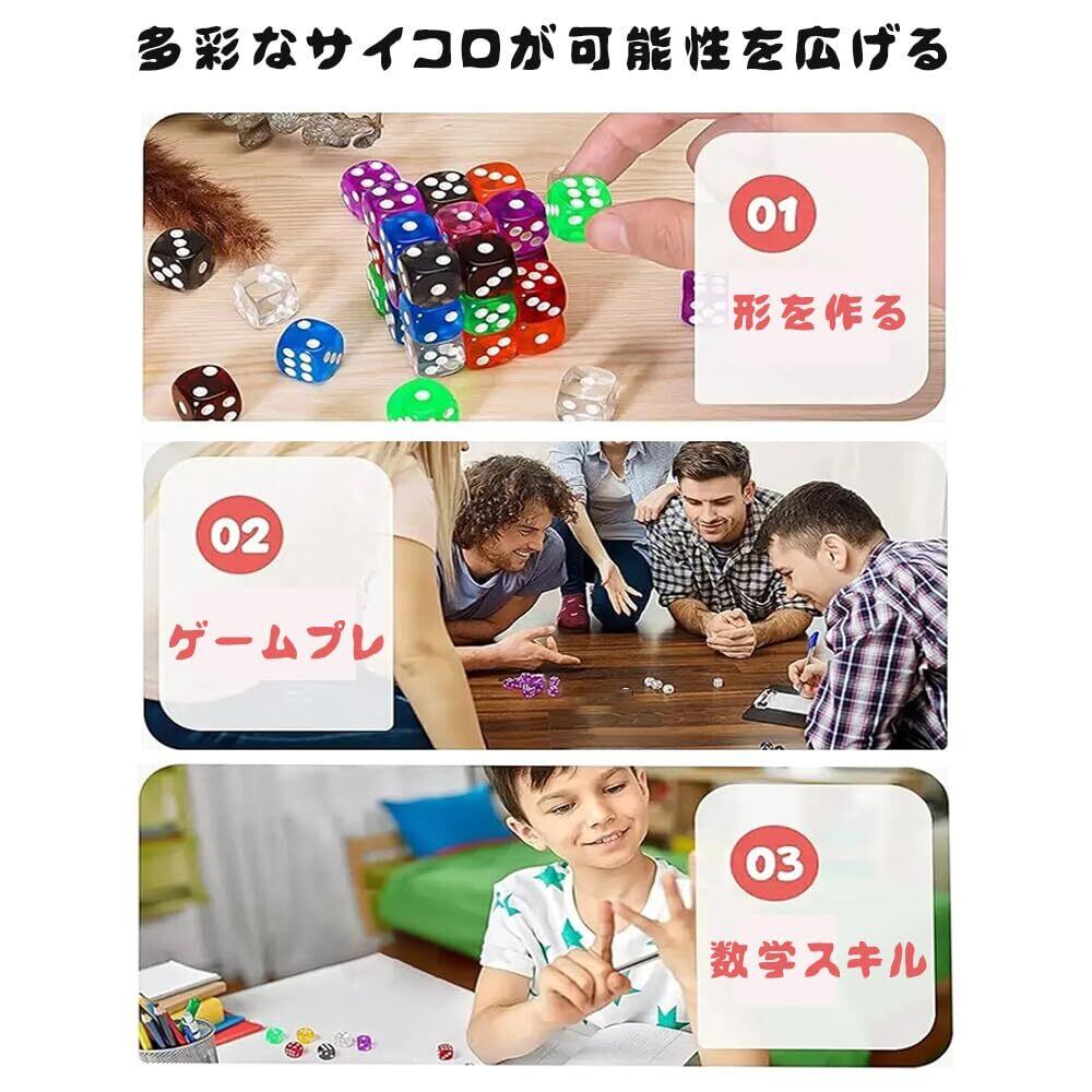 【様々な場面で活躍】サイコロは算数の授業の補助や、簡単な算数の練習にもなります。教室、家族、友人同士の集まり、レジャーなど、さまざまな場面で活躍します。サイコロゲーム、ボードゲーム、算数の授業に最適です。