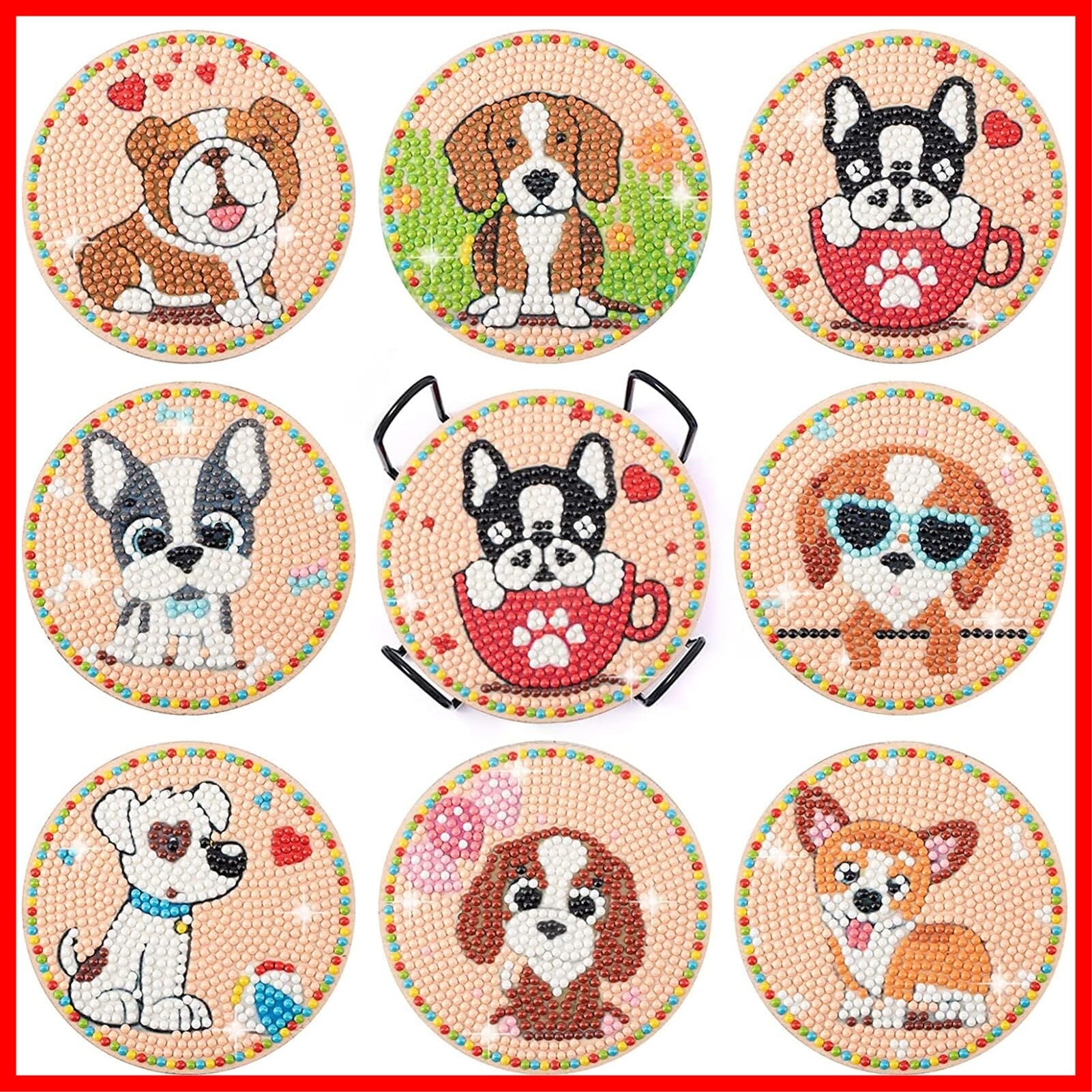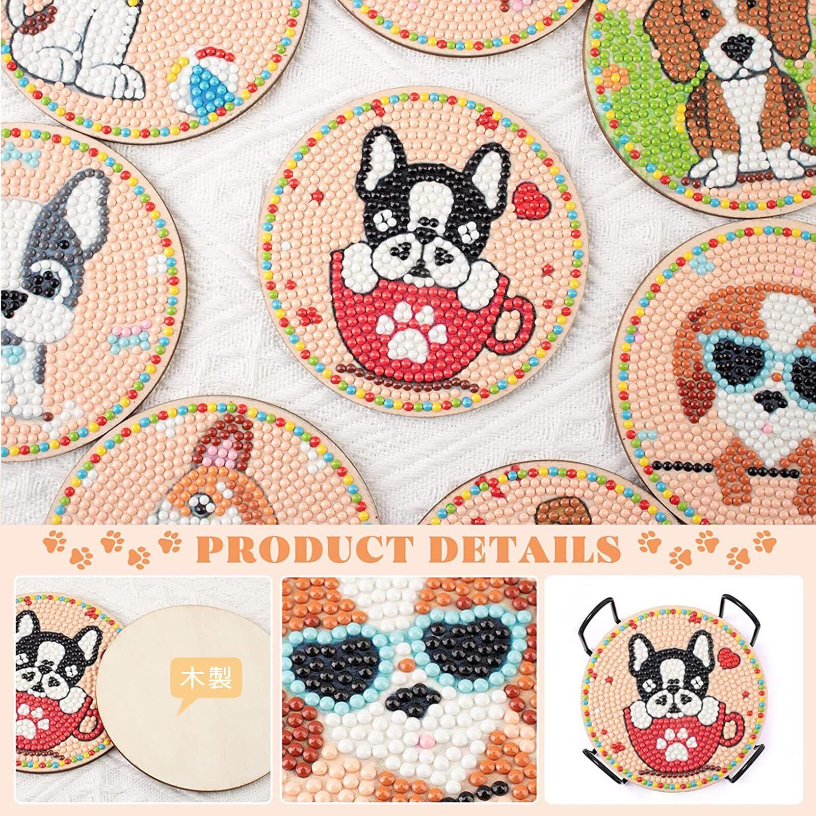 Sitengle ダイヤモンドアート コースター キット8個入 ビーズアート ダイアモンドアート セット DIYダイヤモンドペインティング 5Dダイヤモンド塗装キット ホルダー付き コースター 手芸キット 初心者、大人、子供用 人気 手作り アートクラフト用品 (8個セット 犬) | hananoki