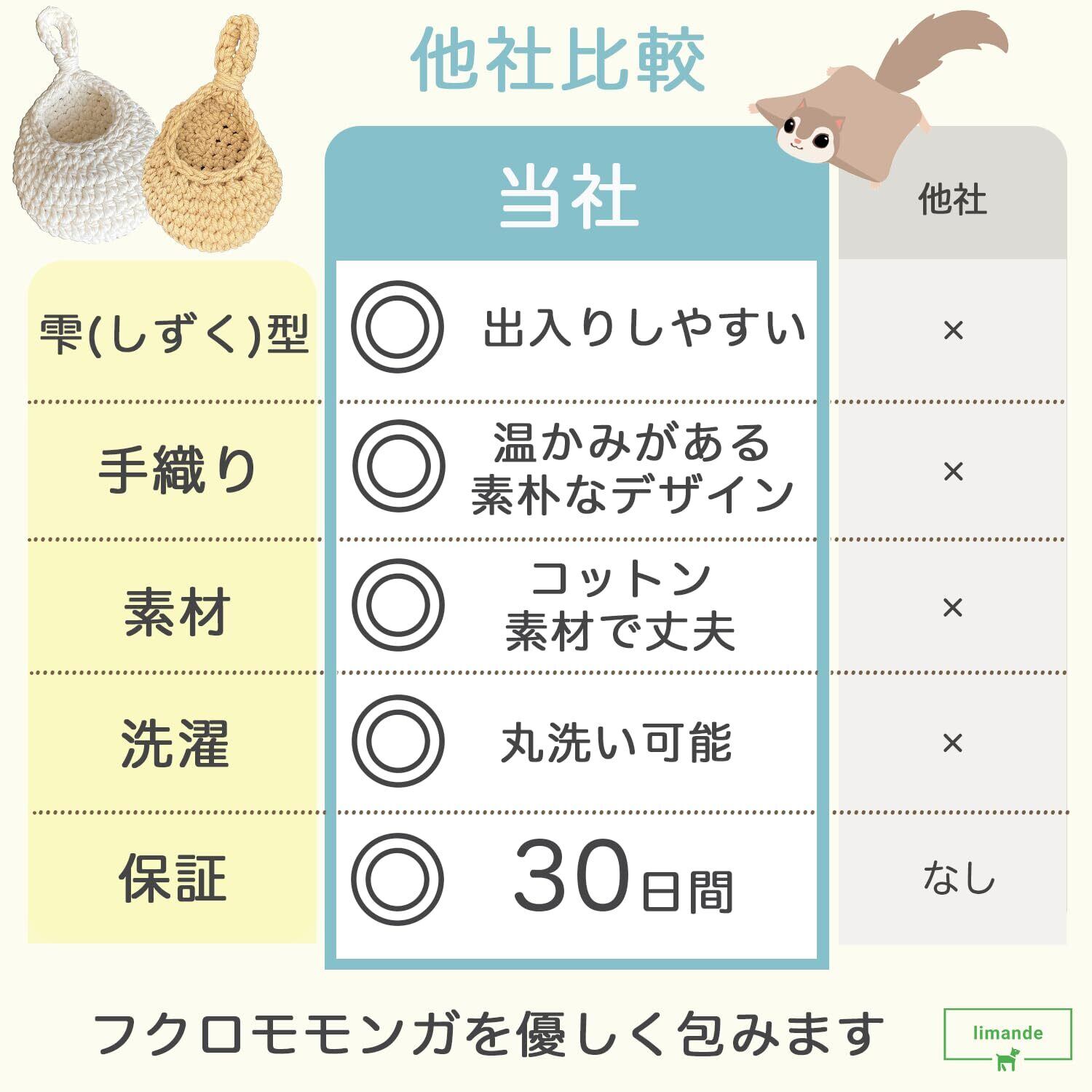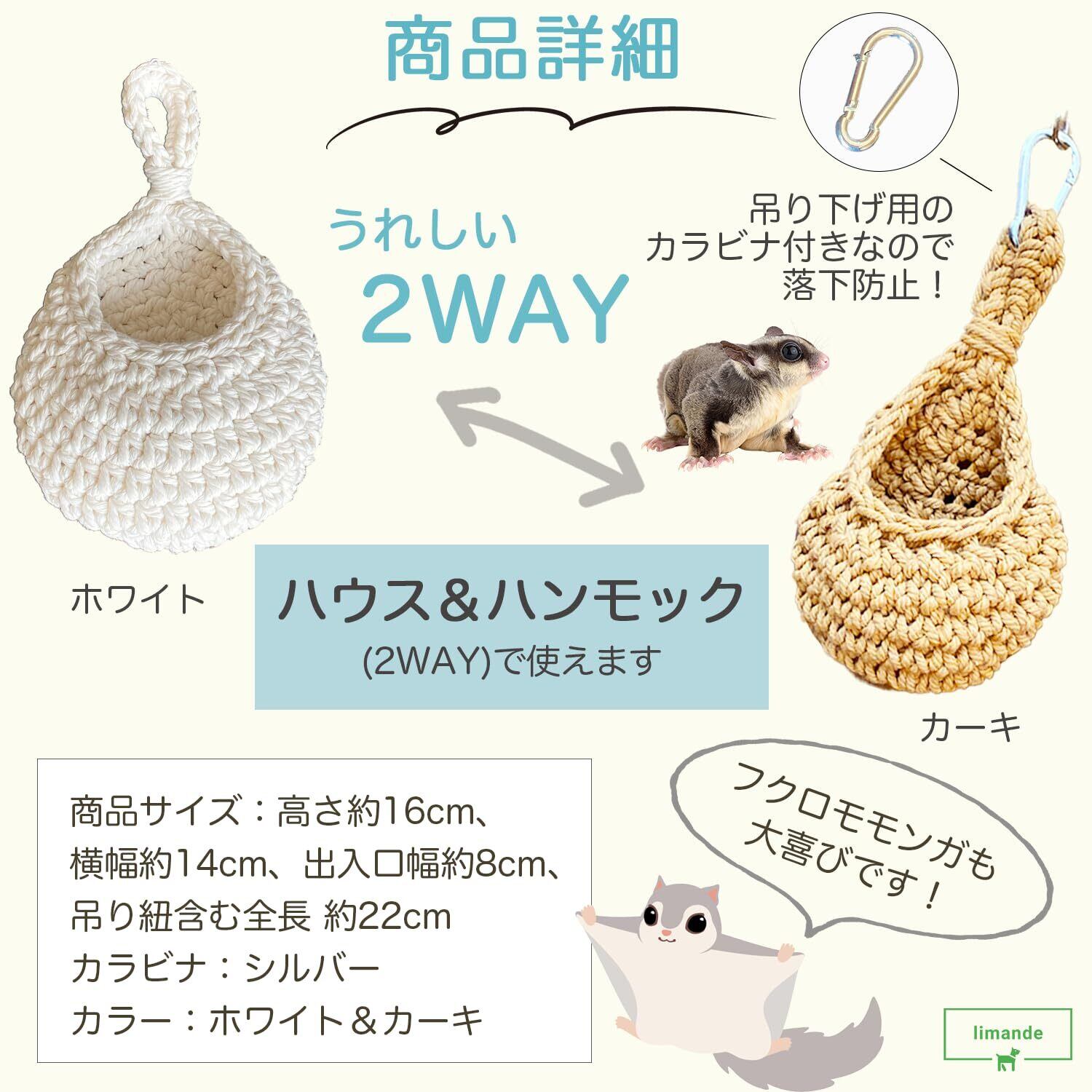 limande フクロモモンガ ポーチ モモンガポーチ 手織り 雫型 吊り下げフック付き 小動物 ハウス(ホワイト色)
