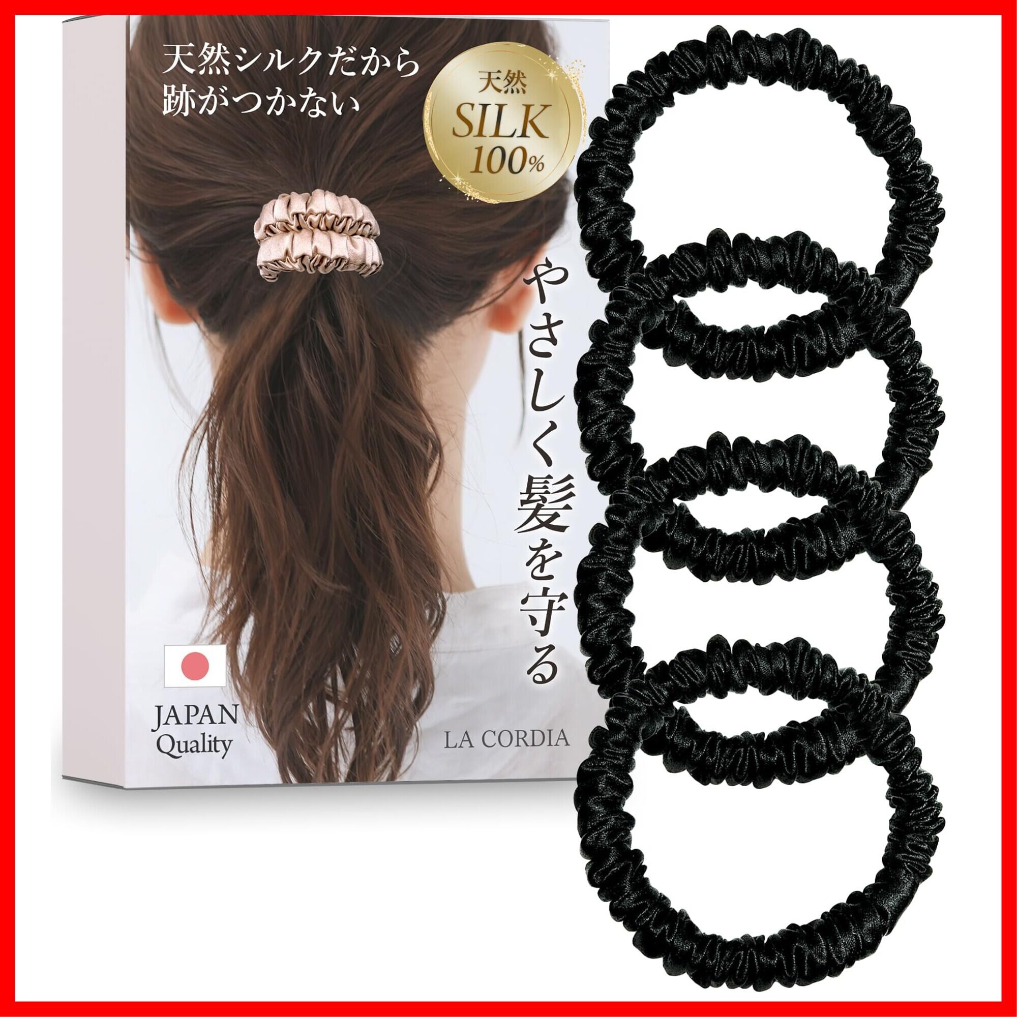 【HUA監修 シルク 100%】 4点セット ヘアゴム シュシュ 髪ゴム 大人 跡がつかない 髪留め 黒 (アソートD)