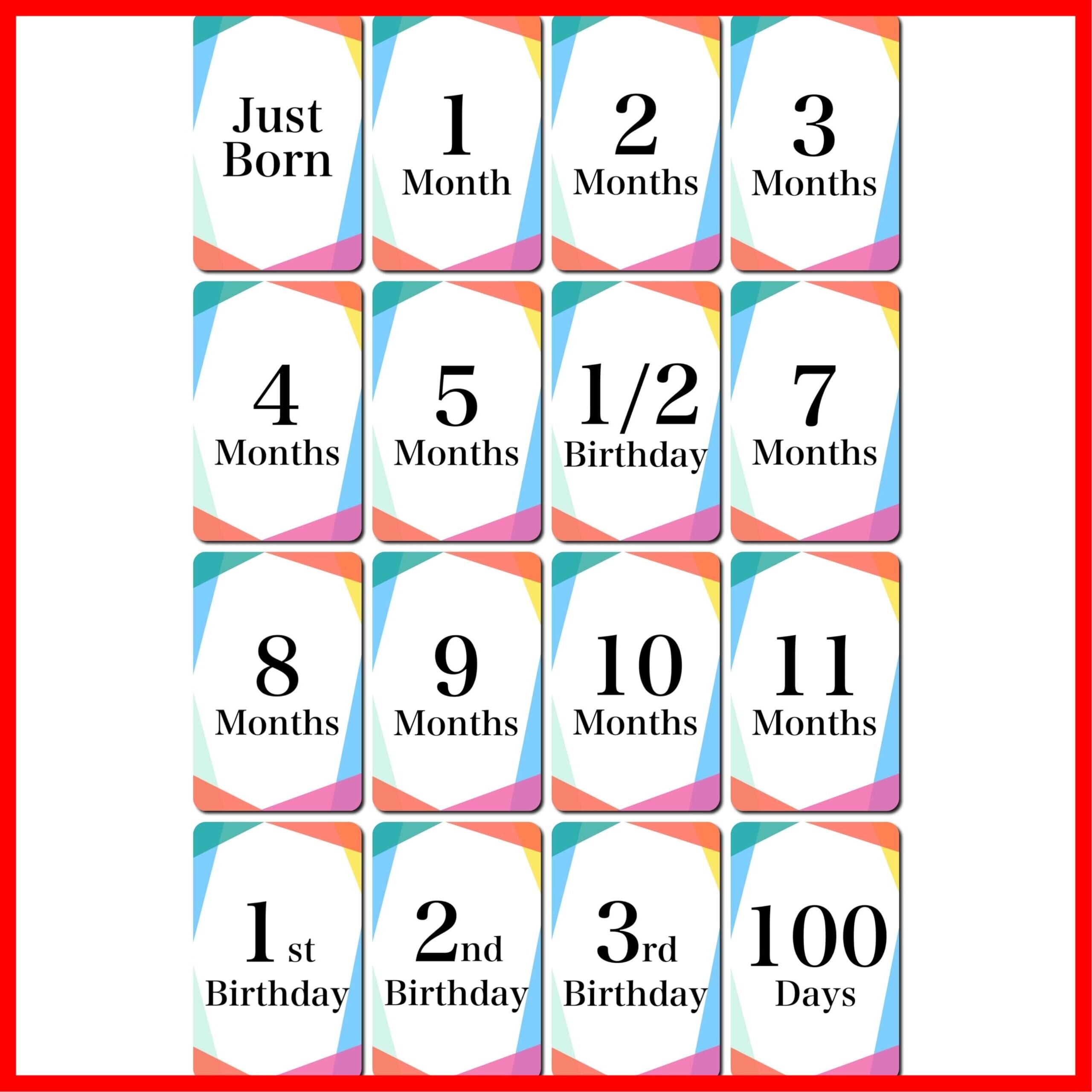 ベビーマンスリーフォトカード (月齢フォトカード) カラフル はがきサイズ/角丸/16枚セット