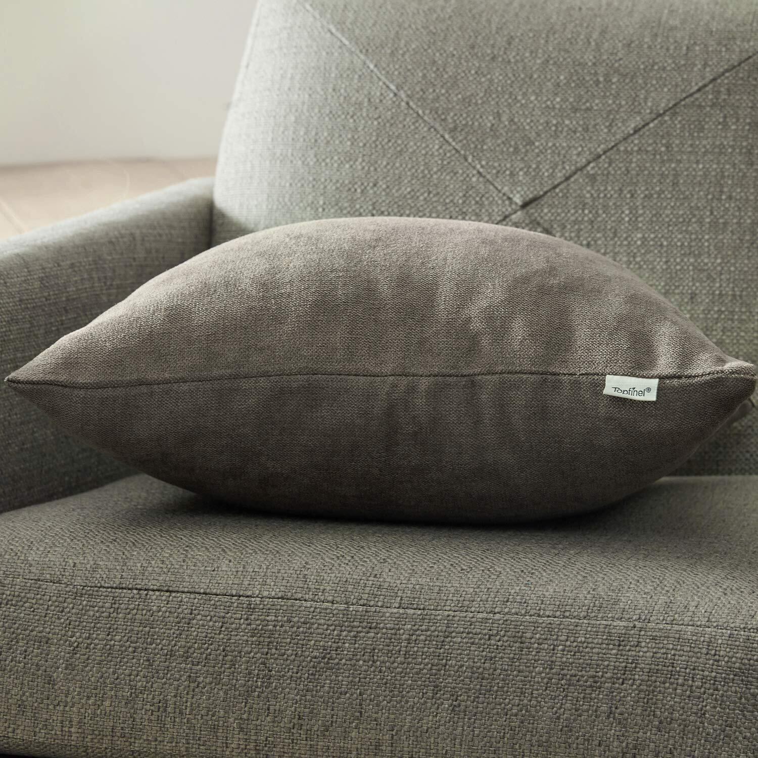 Topfinel クッションカバー リネンっぽい 45×45cm 北欧 おしゃれ 綿麻 無地 ソファ背当て 装飾枕カバー 座布団カバー 濃いブラウン 2枚セット(全18色)