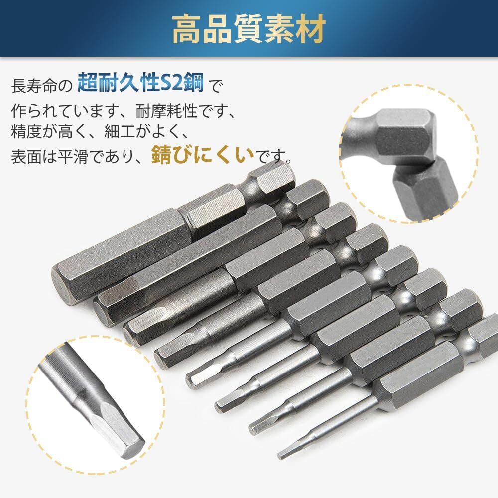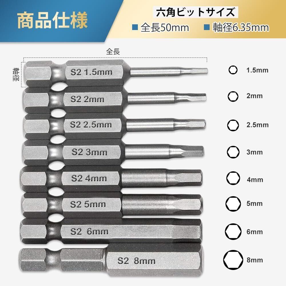 六角レンチビット 精密ドライバーセット 6.35mm 磁気吸着 ヘキサゴンビット 50mm長 H1.5-H8 電動ドライバー ビット工具 8本入り