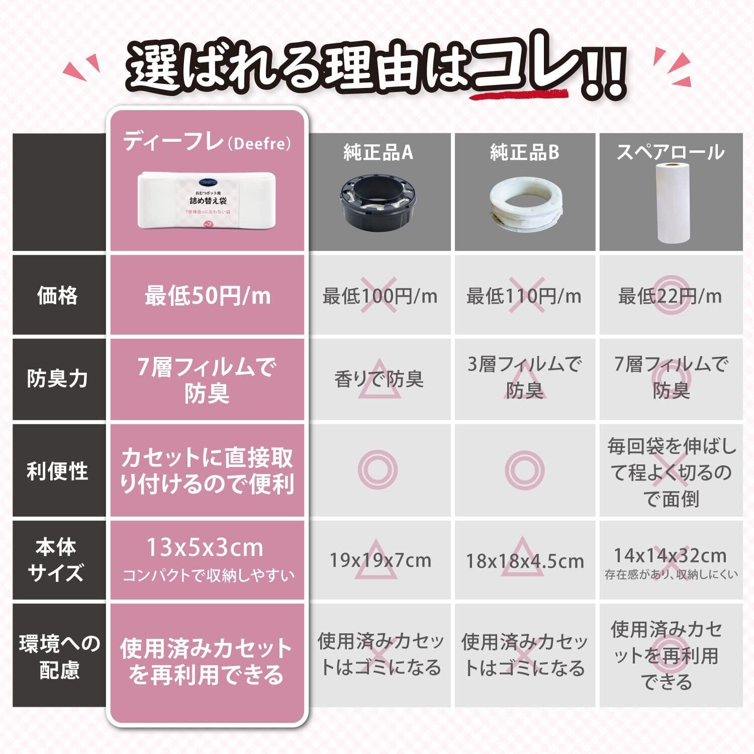 【商品サイズ】1個の長さ:約7m。1個でSサイズのおむつ約90枚処理することができます。※純正品より厚いので詰められる袋の長さが少なくなるのです。