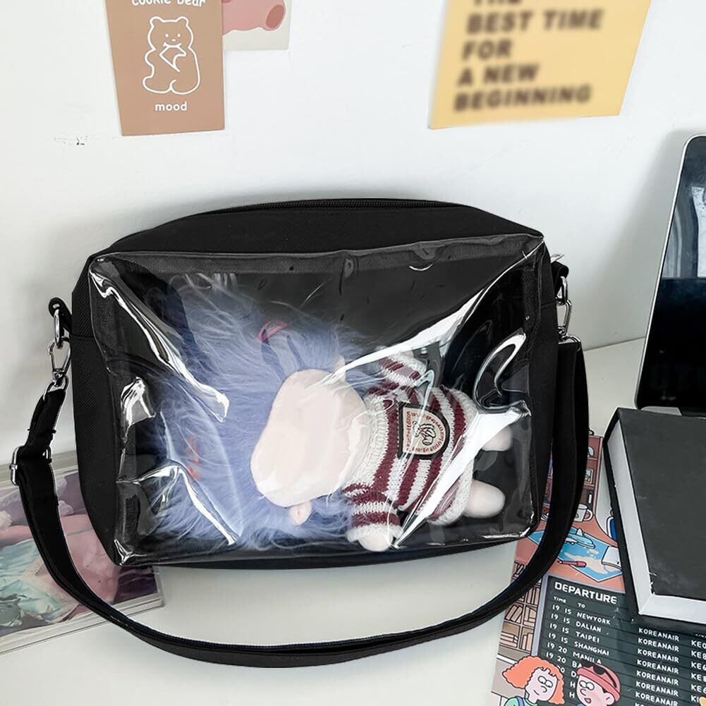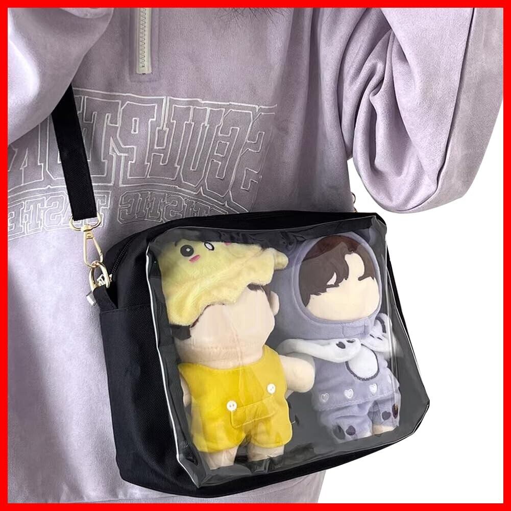 YUYAKESHI バッグ 痛バ 見せバッグ ショルダーバッグ 四角 2個20cmぬいぐるみ用 外出 透明窓 大容量 収納 二重 ポーチ 29*20cm(ブラック)