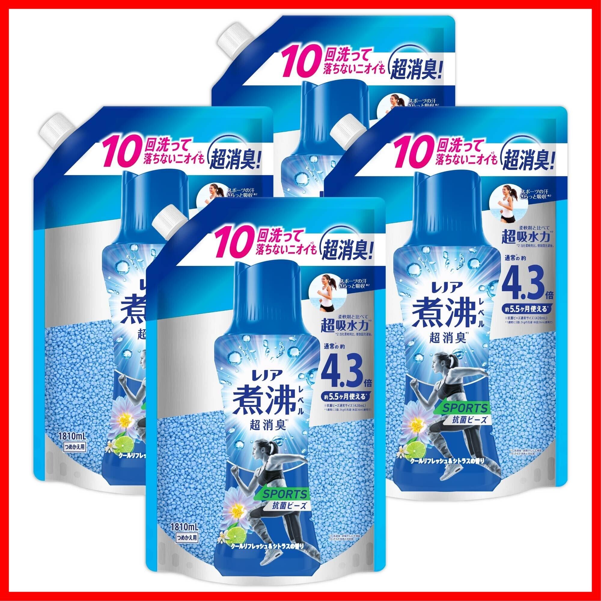 Lenor レノア 煮沸レベル超消臭 抗菌ビーズ SPORTS クールリフレッシュ&シトラス 詰め替え 1,810mL×4袋 [大容量] [ケース品] 柔軟剤と一緒に使って効果長続き